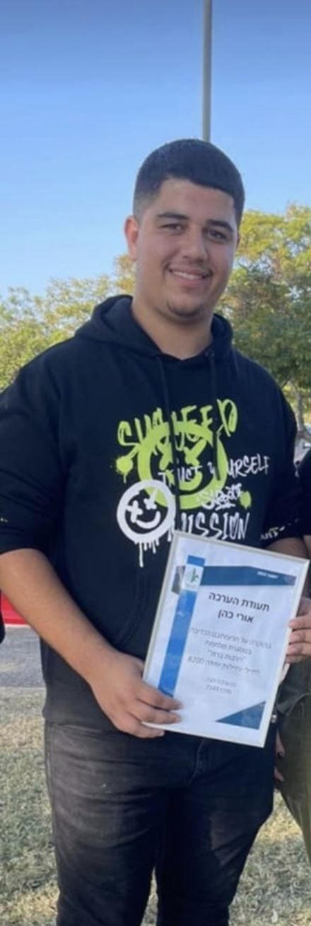 אורי דוד כהן בן ה18 קיבל תעודת הוקרה מיוחדת על פעילותו למען חיילי צה"ל במסגרת הלחימה