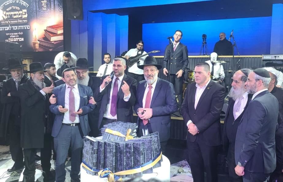 השר - לשעבר ואי"ה בעתיד - המשנה לרה"מ ויו"ר ש"ס הרב אריה דרעי התקבל בכבוד רב במעמד ונראה משוחח עם ידידו ר' מיכאל אלמלם במעמד.