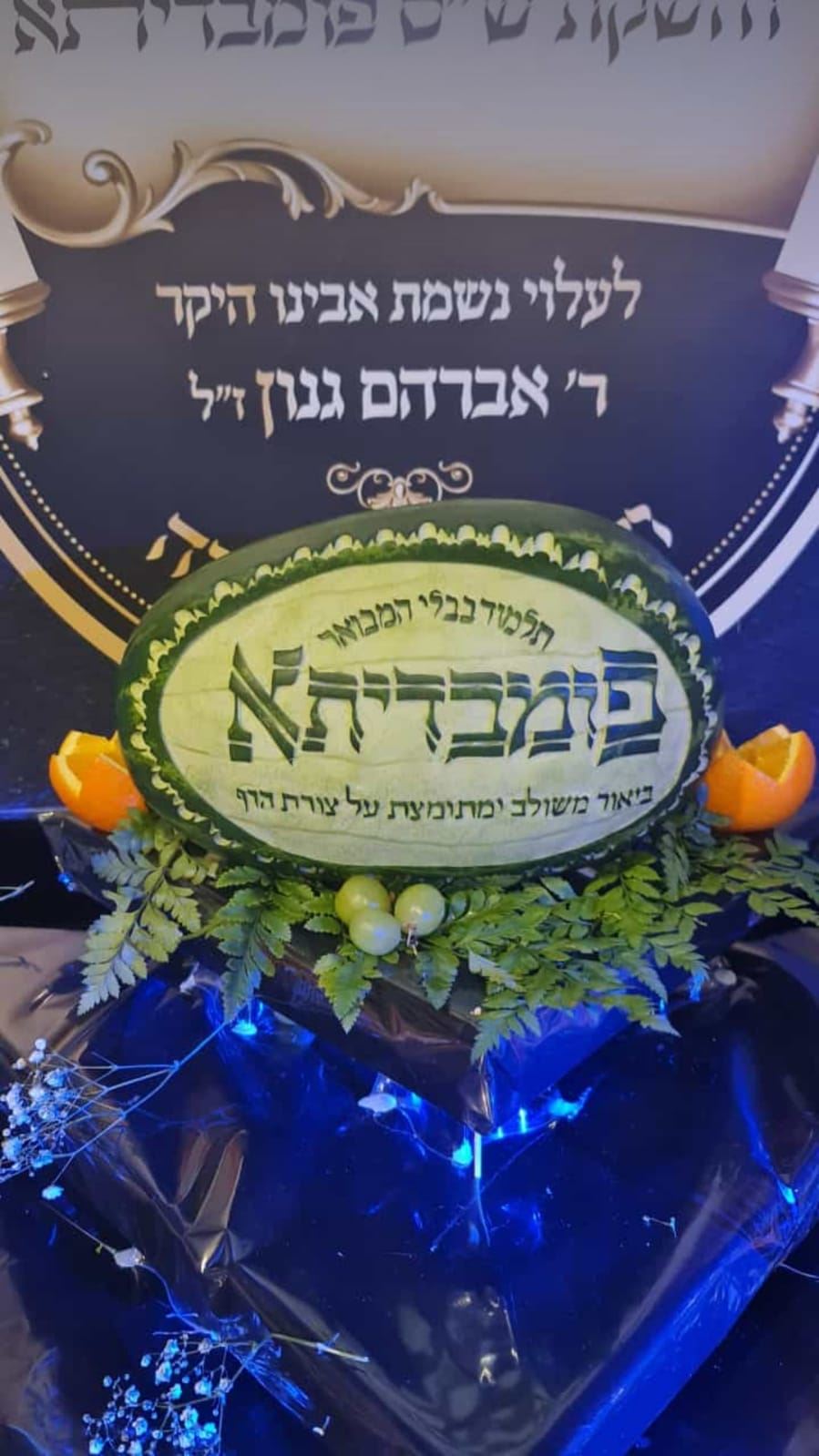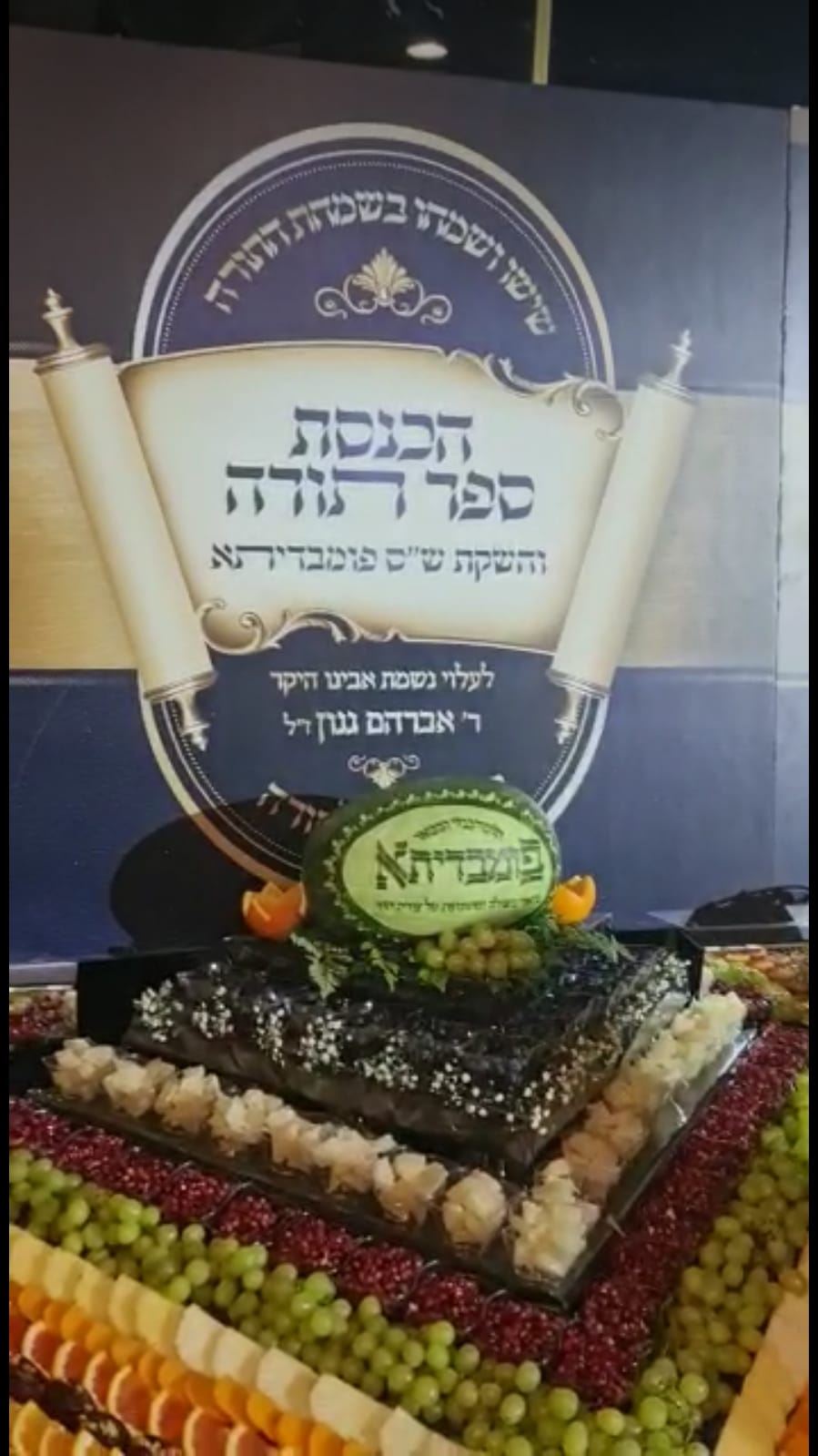 שמחת הכנסת ספר תהורה שולבה במעמד ההיסטורי להשקת מהדורת הש"ס המבואר על צורת הדף "פומפדיתא", פרי יצירתו של ידידו משכבר הימים מזכה הרבים, הנגיד ר' רונן גנון מצפת, כשספר תורה נתרם לע"נ אביו הרב אברהם גנון ז"ל.