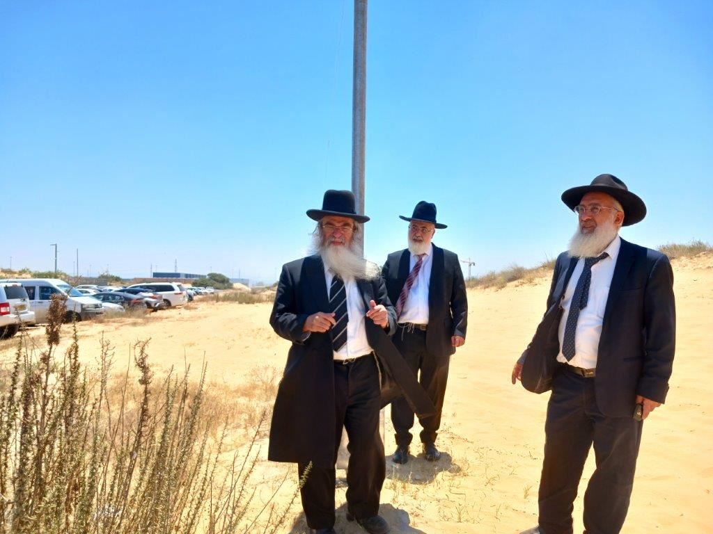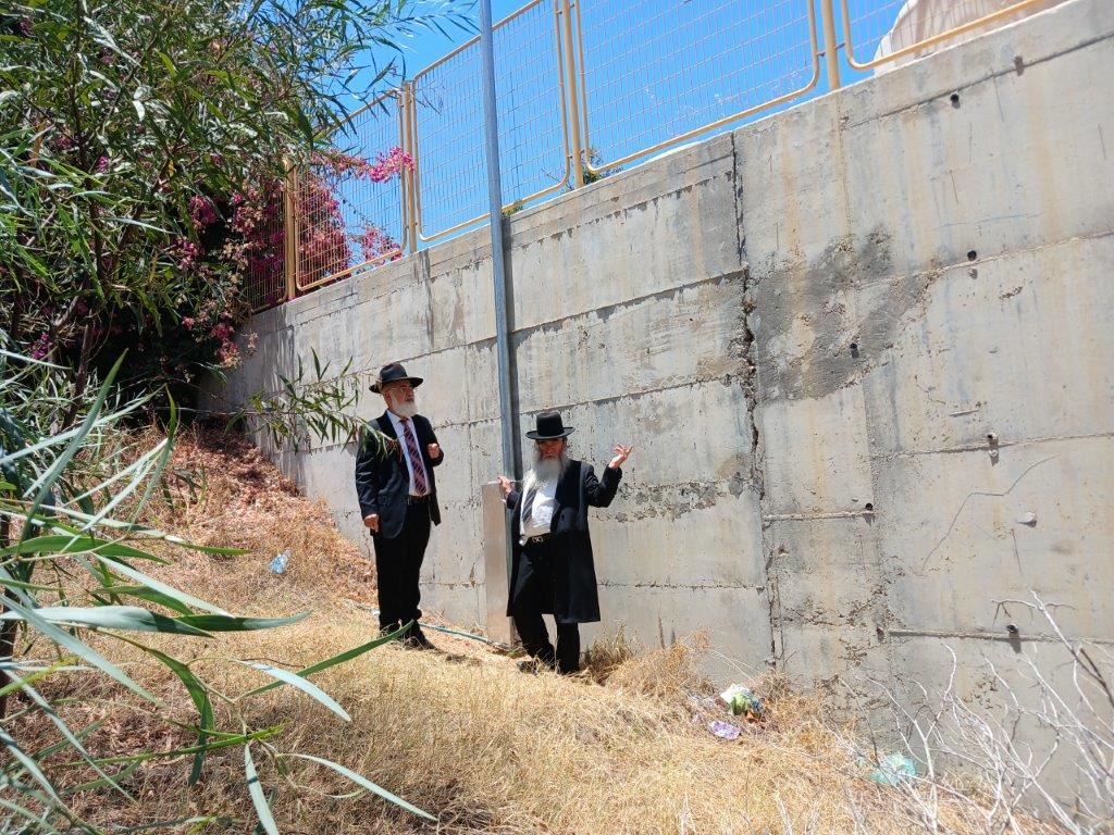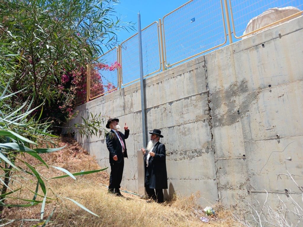 בסיור הגר"ח קלמנוביץ הציג בפני הרב דהן והרב בן-חמו את עמודי העירוב שנבנו כראוי גם בשטח הפתוח וגם בסמוך לחומה כשהכל נבנה כהלכה בבטיחות ומתוך אחריות.