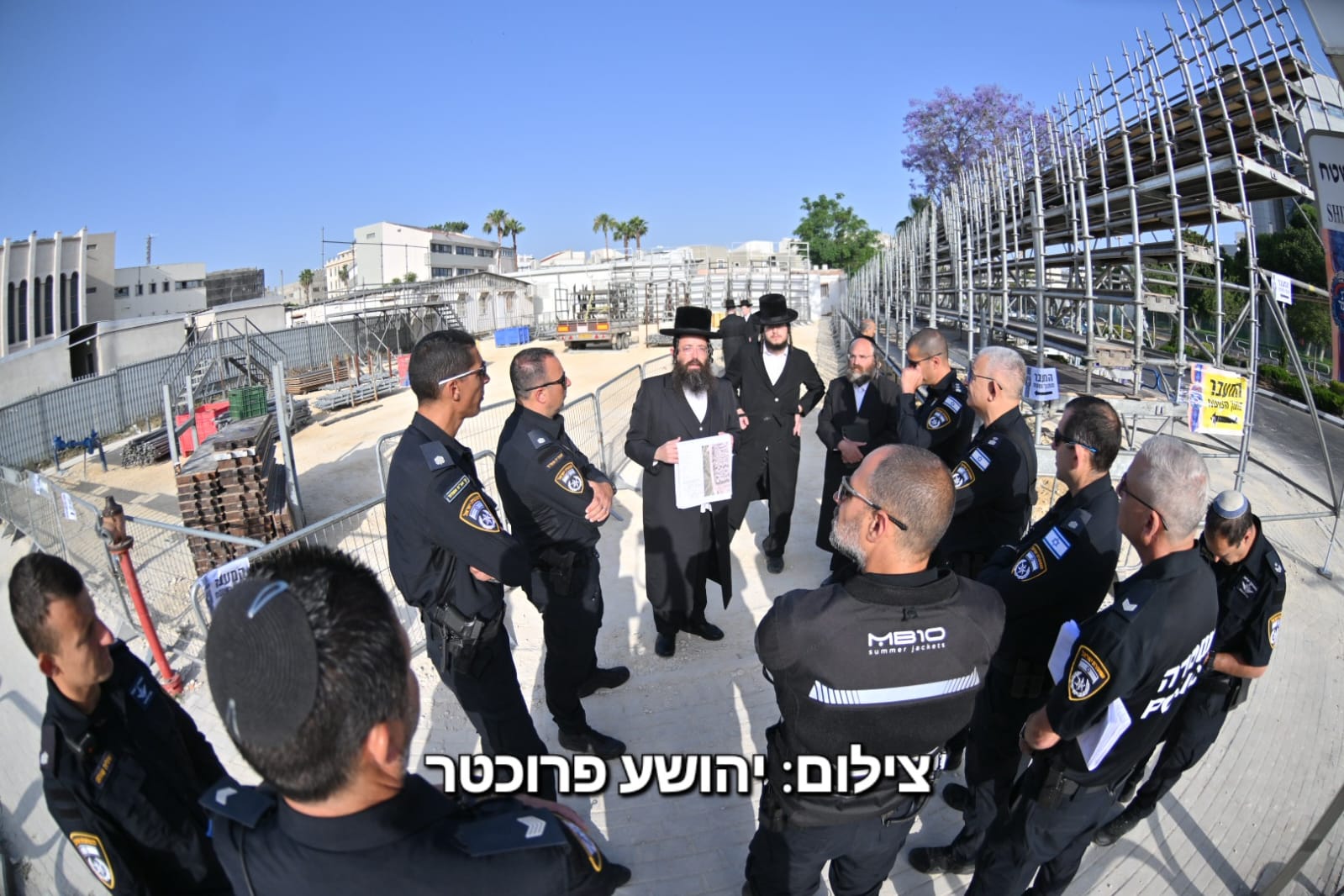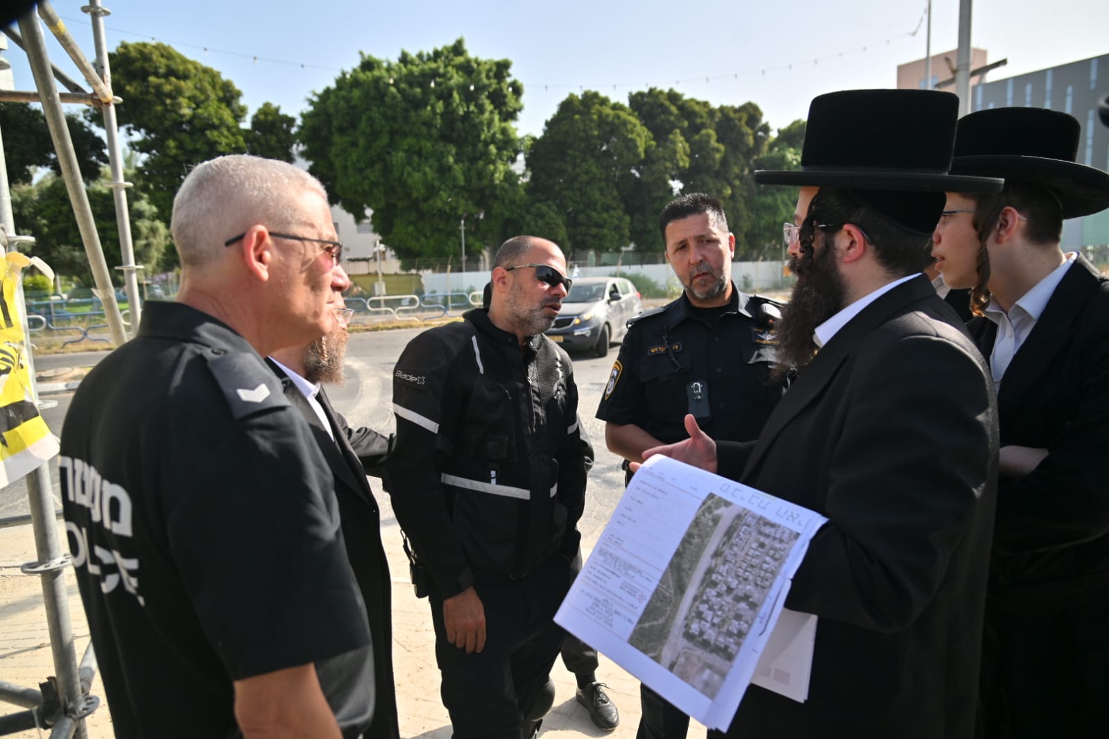 בכירי משטרת אשדוד הגיעו למתחם שבו יתקיים מעמד ה'הדלקה' הענק בראשות האדמו"ר מויזניץ שליט"א. "נערכים לקליטת אלפים"