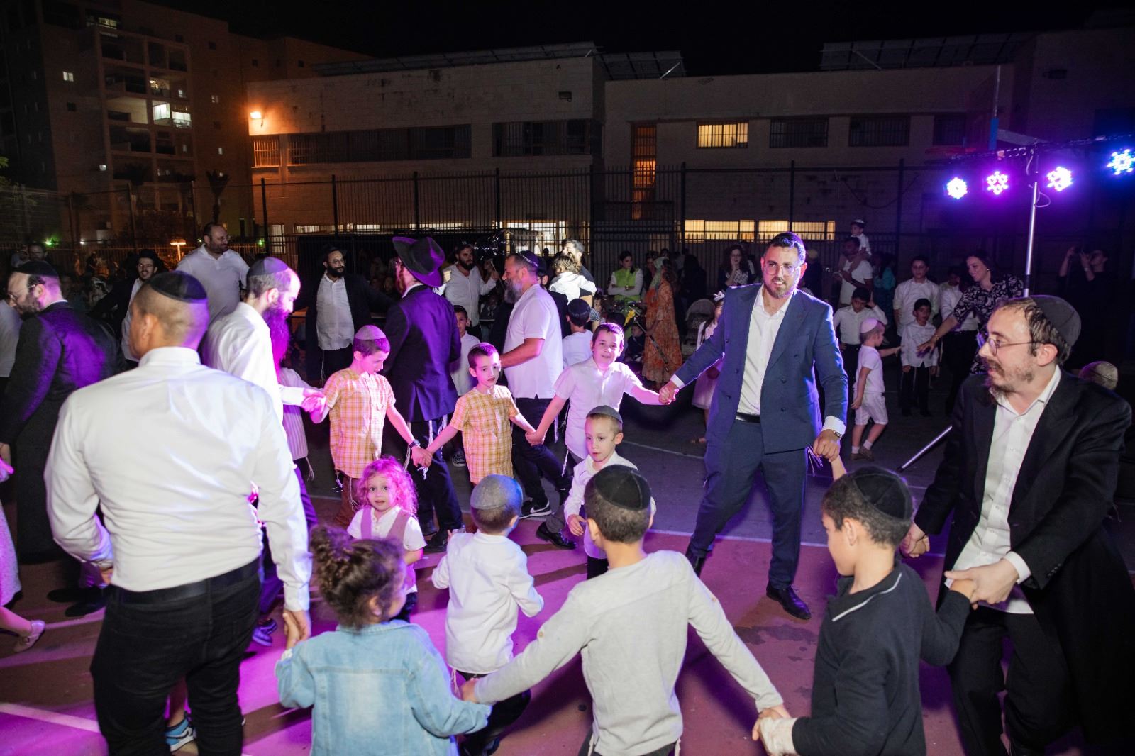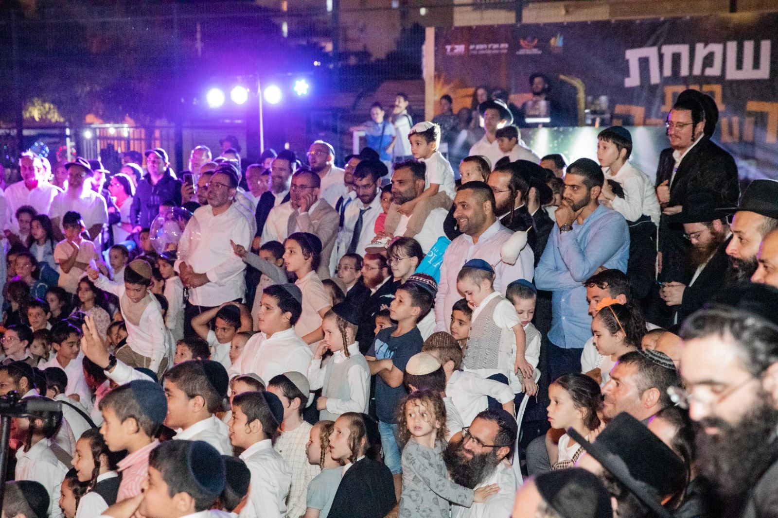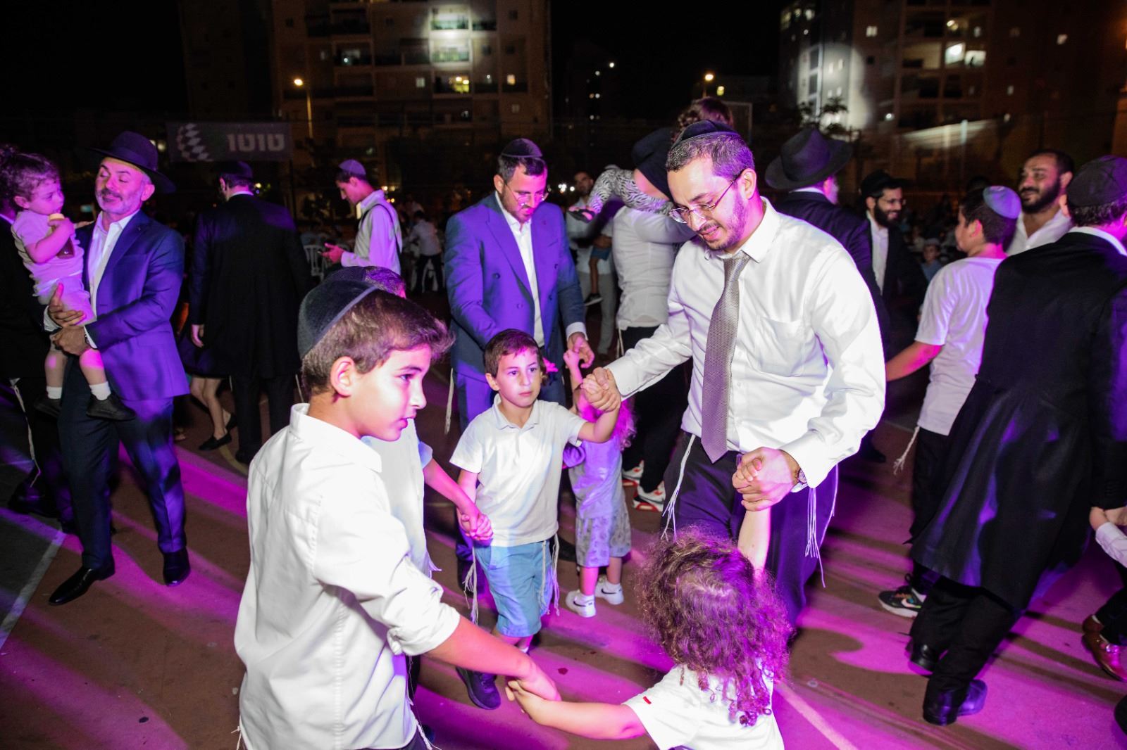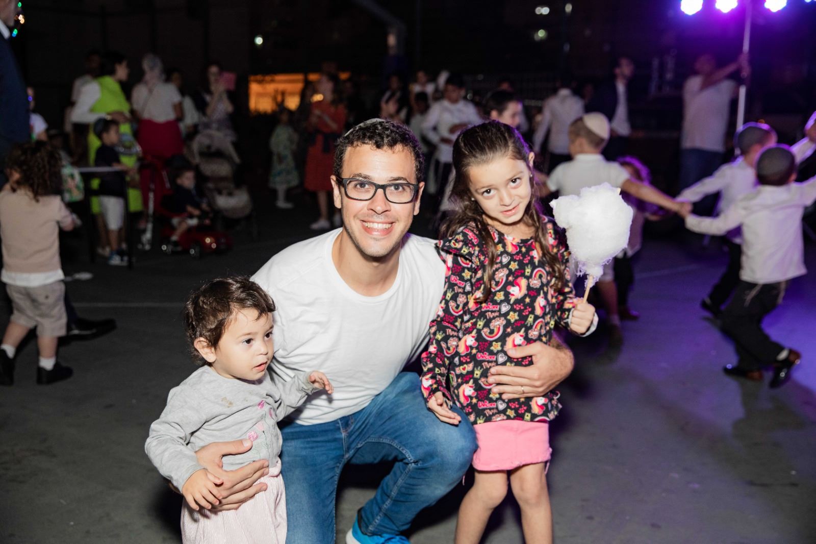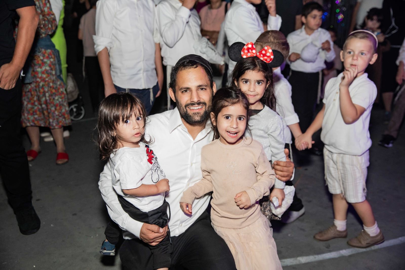 מסורת של שמחה ברחובה של עיר: למעלה מ-1000 הורים וילדים השתתפו בשמחת בית השואבה של חב"ד ברובע י"א תחת ניצוחו של רב השכונה הרב מרדכי לאופר שליט"א