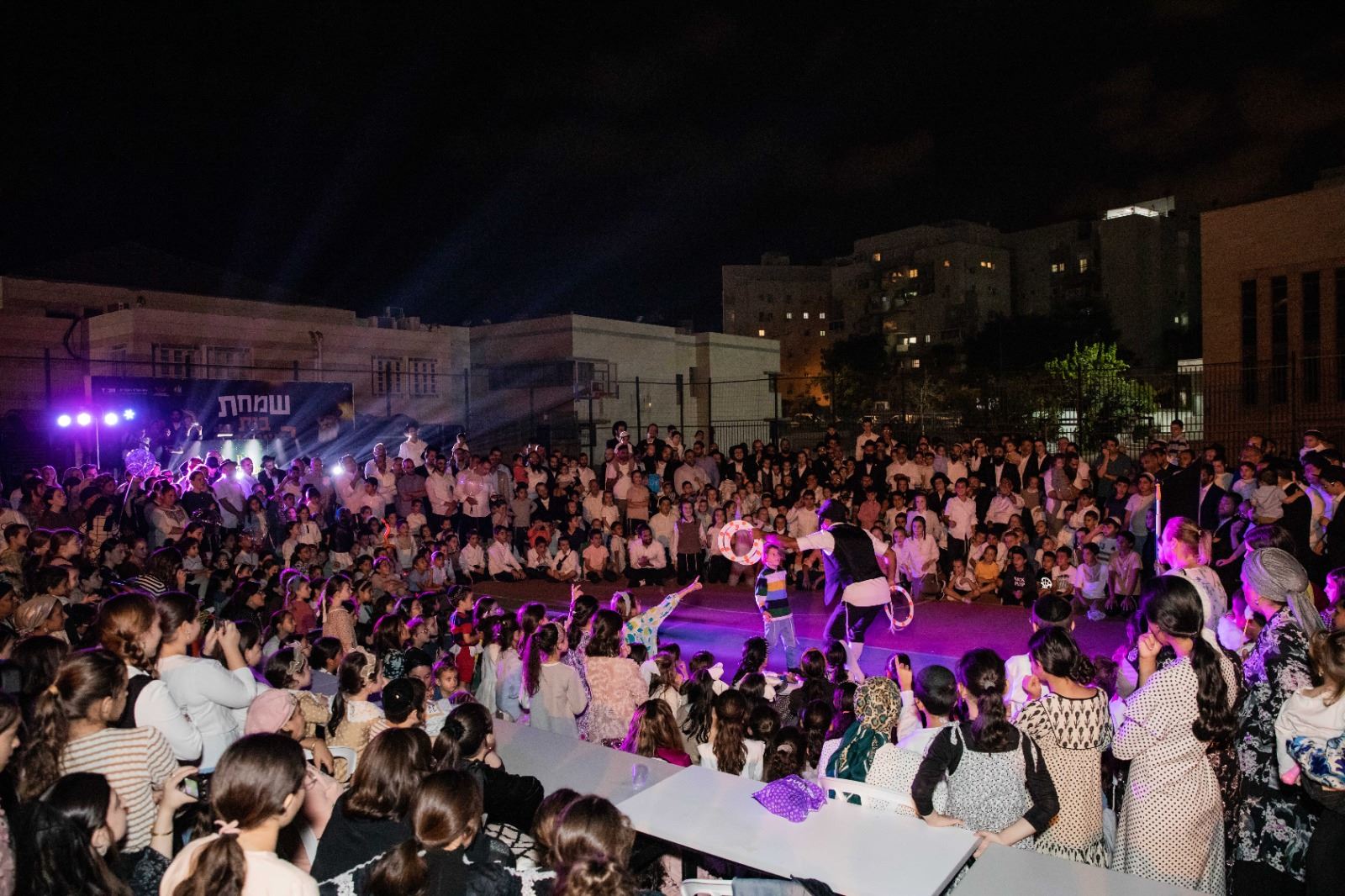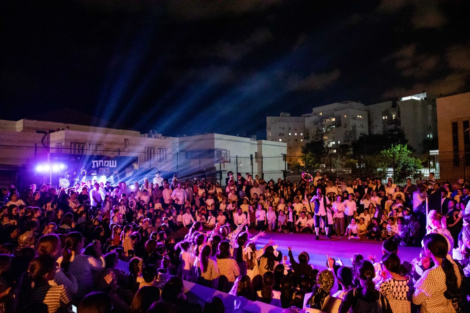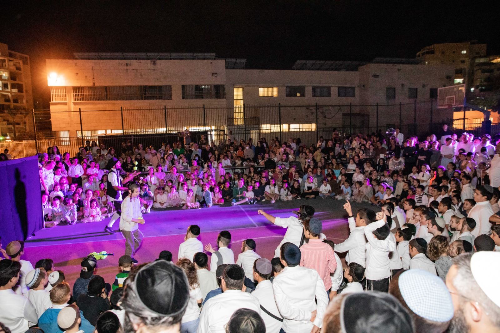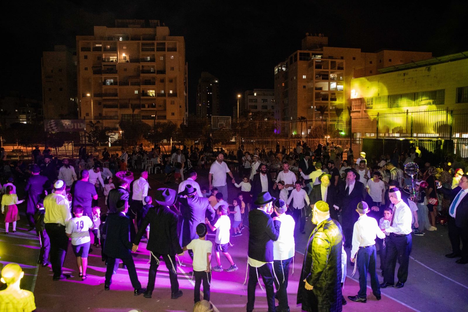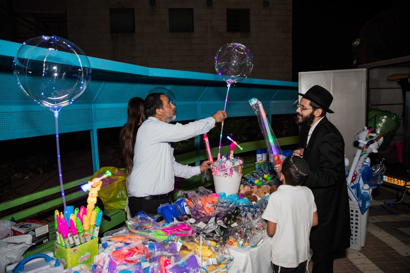 מסורת של שמחה ברחובה של עיר: למעלה מ-1000 הורים וילדים השתתפו בשמחת בית השואבה של חב"ד ברובע י"א תחת ניצוחו של רב השכונה הרב מרדכי לאופר שליט"א