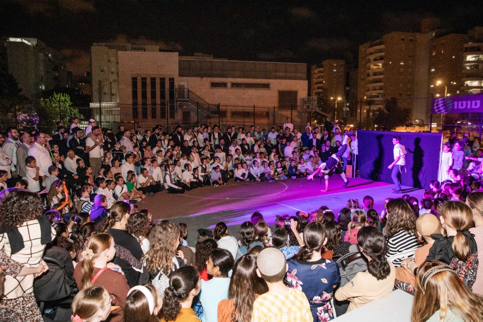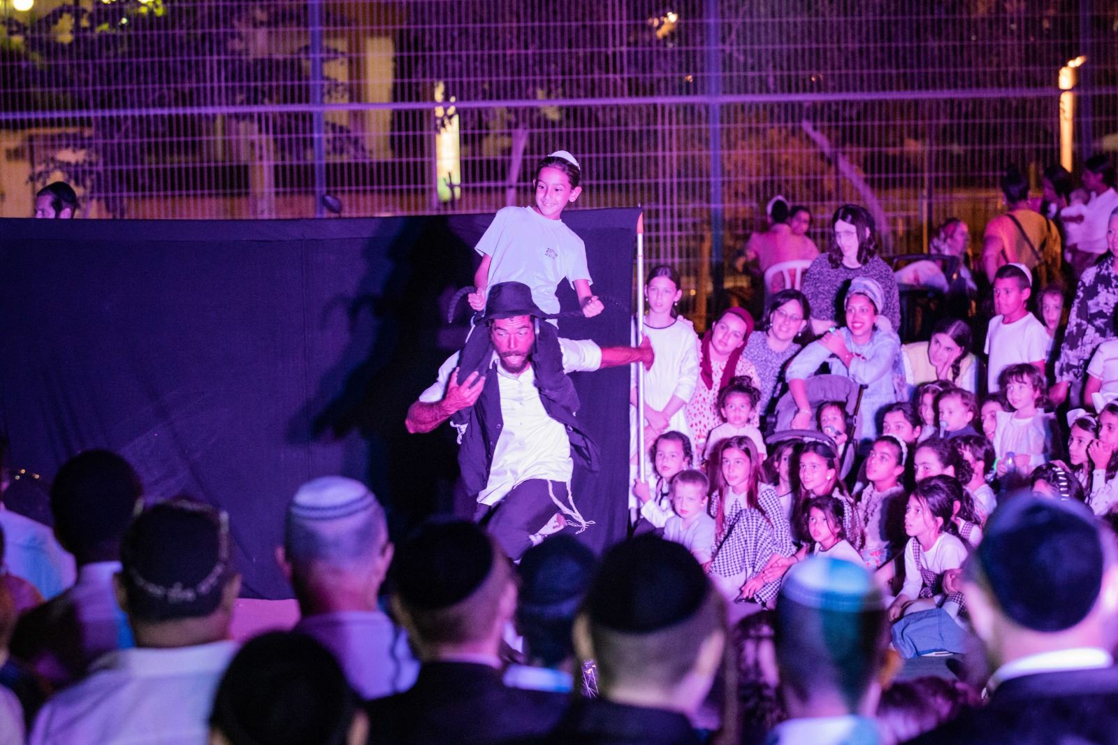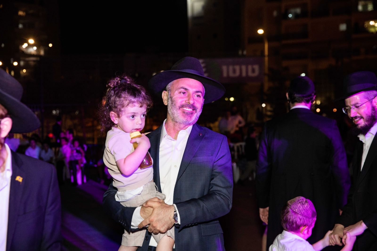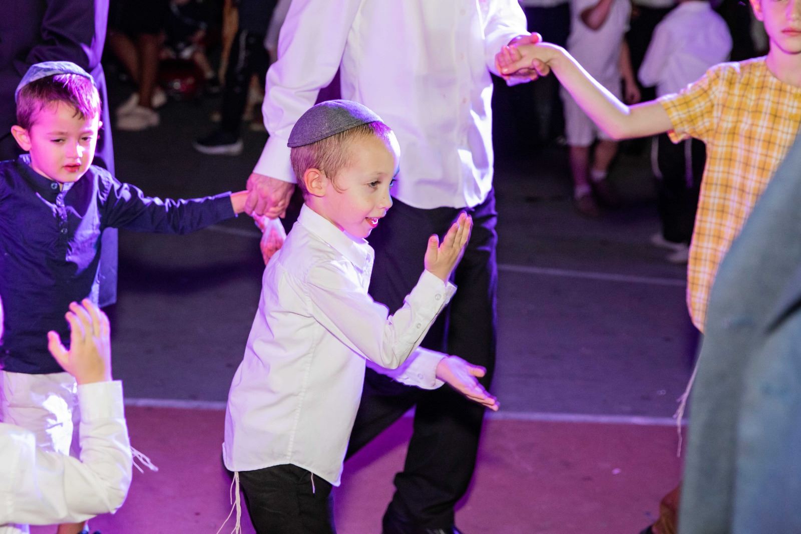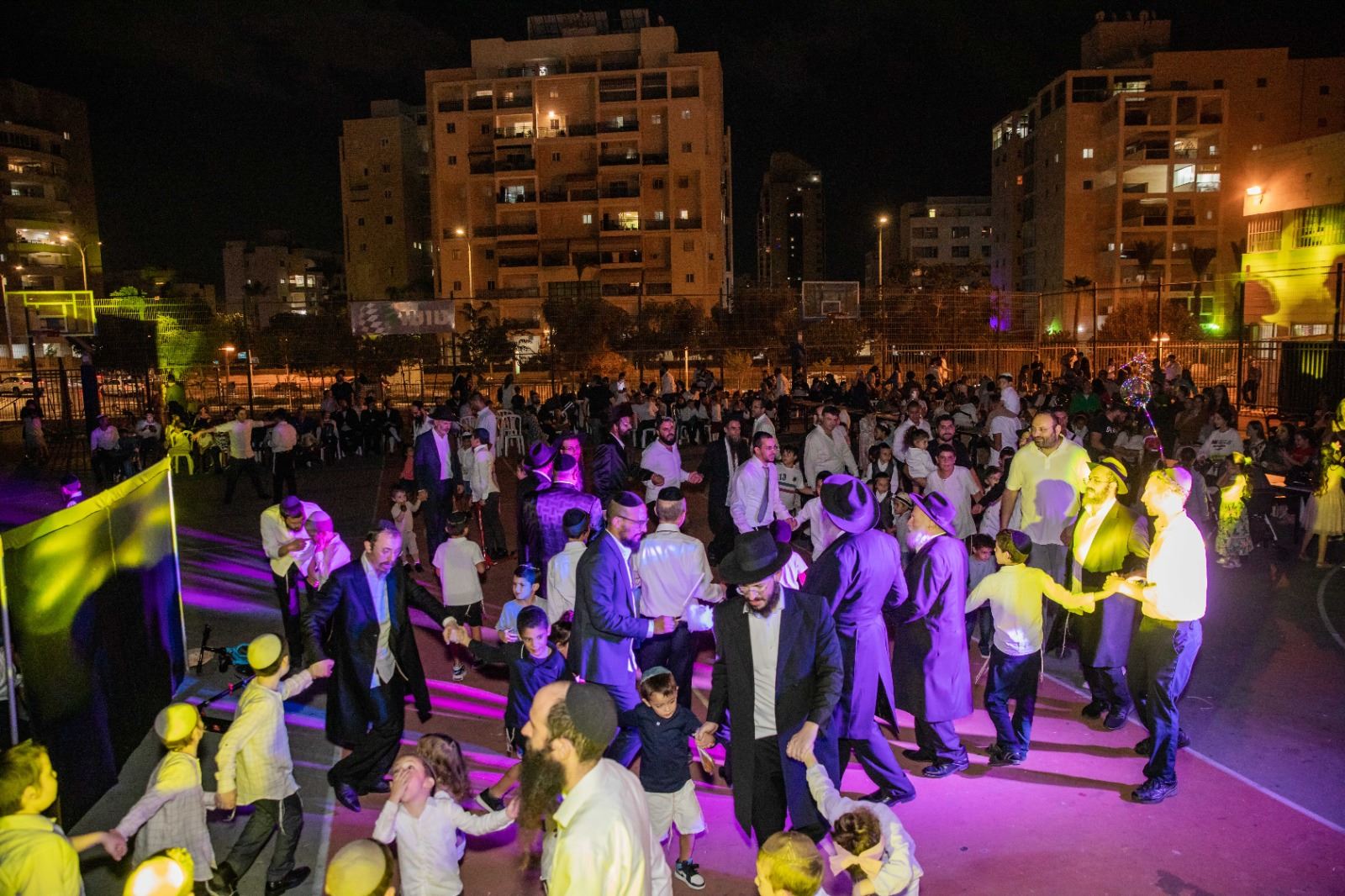 מסורת של שמחה ברחובה של עיר: למעלה מ-1000 הורים וילדים השתתפו בשמחת בית השואבה של חב"ד ברובע י"א תחת ניצוחו של רב השכונה הרב מרדכי לאופר שליט"א