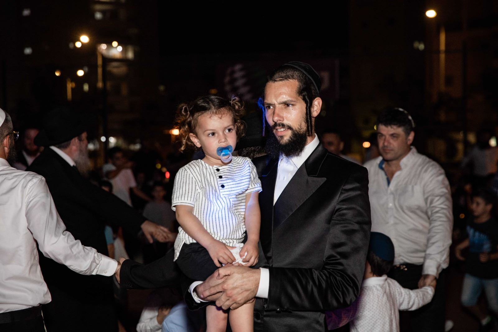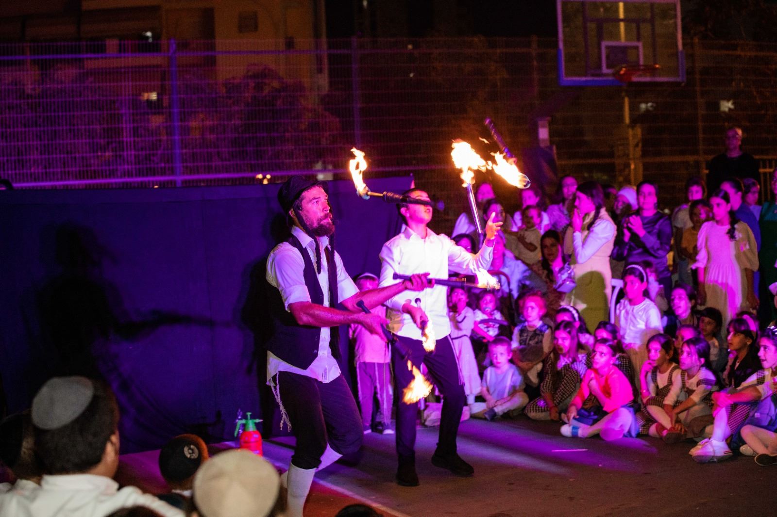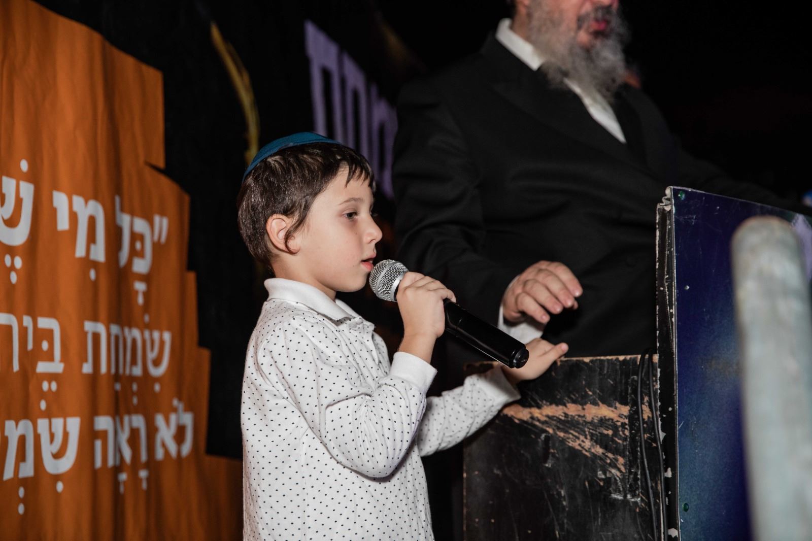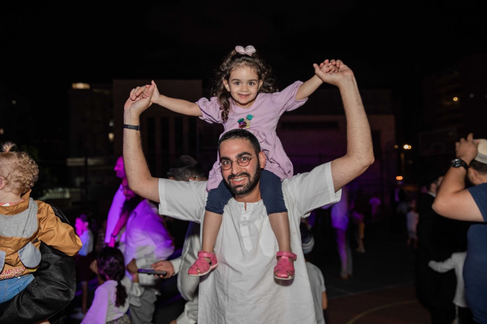 מסורת של שמחה ברחובה של עיר: למעלה מ-1000 הורים וילדים השתתפו בשמחת בית השואבה של חב"ד ברובע י"א תחת ניצוחו של רב השכונה הרב מרדכי לאופר שליט"א