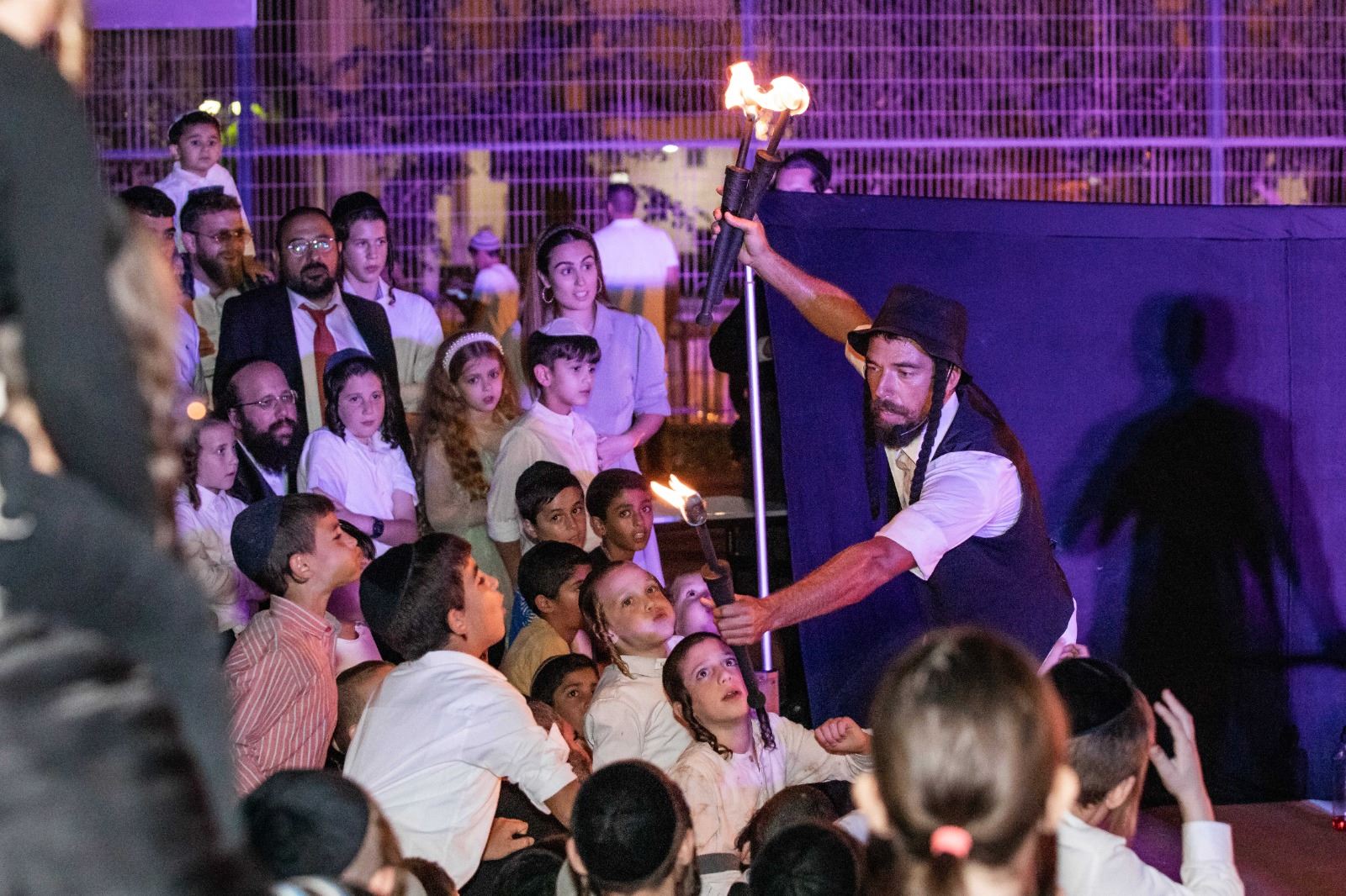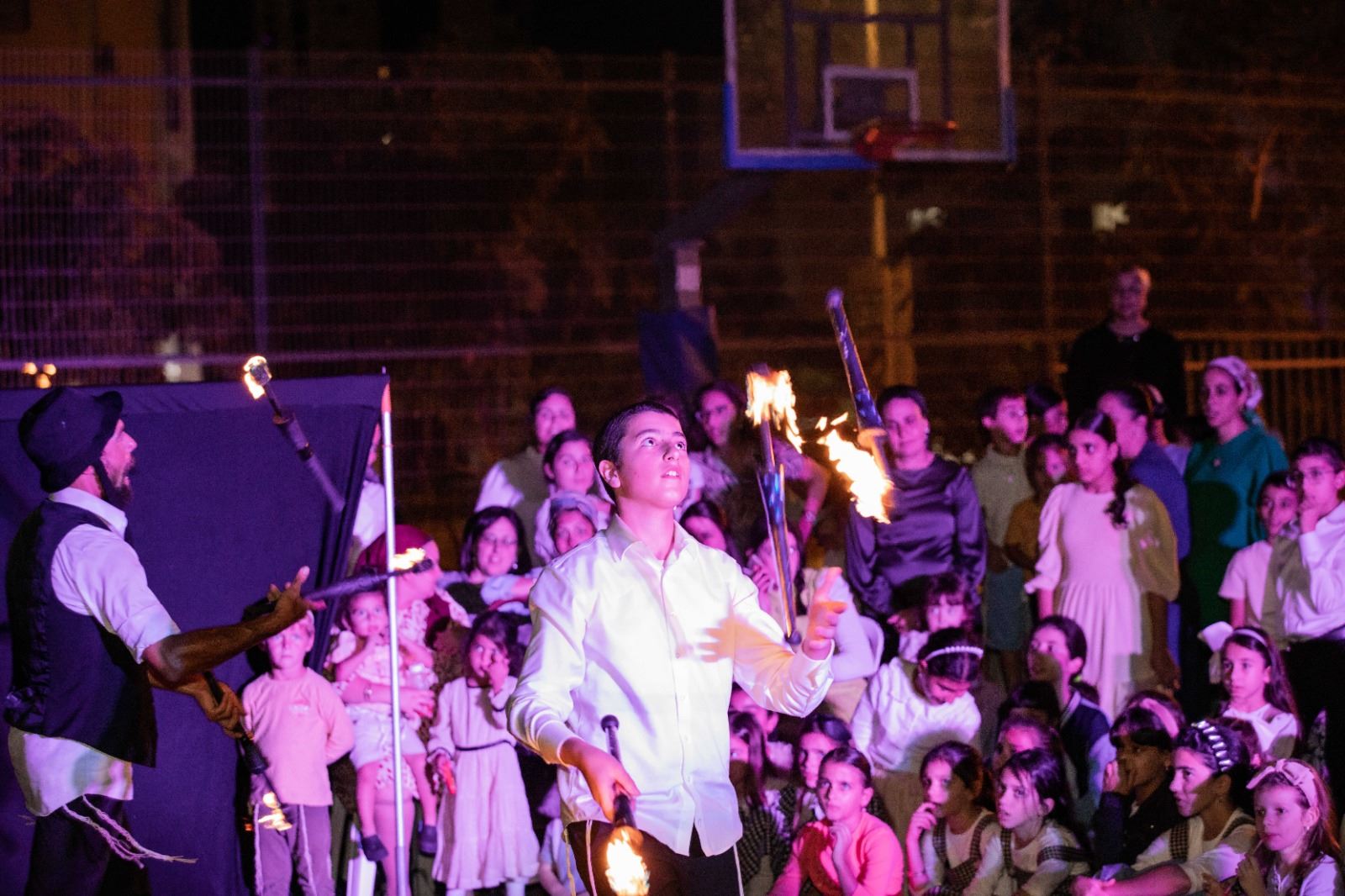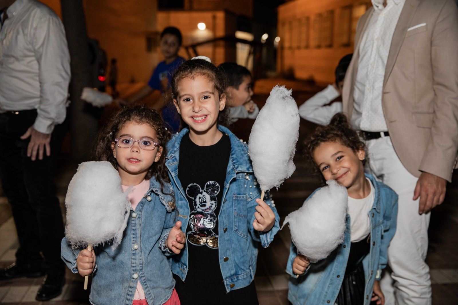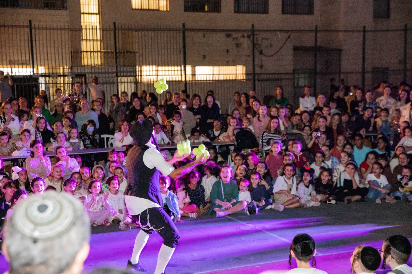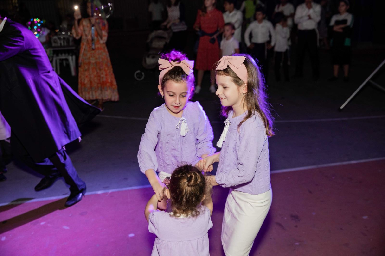 מסורת של שמחה ברחובה של עיר: למעלה מ-1000 הורים וילדים השתתפו בשמחת בית השואבה של חב"ד ברובע י"א תחת ניצוחו של רב השכונה הרב מרדכי לאופר שליט"א