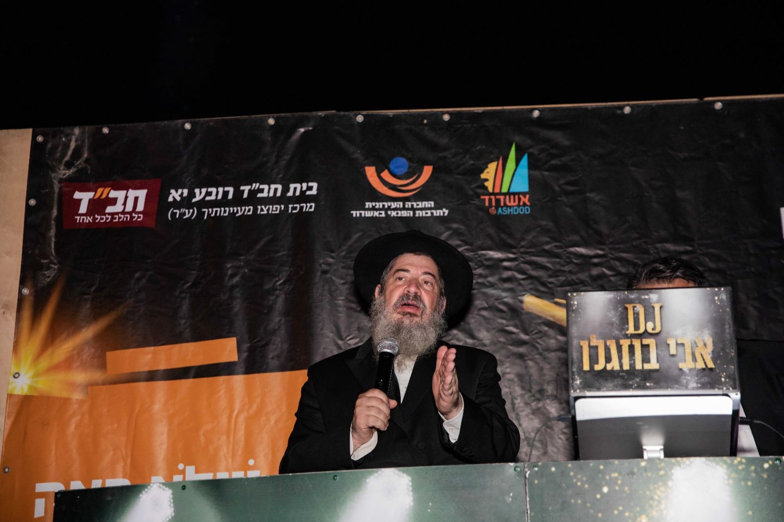 השליח הראשי לאשדוד הרב שניאור גודמן שליט"א בירך את המשתתפים ועודד את הרוקדים לשאוב שמחה לכל השנה.