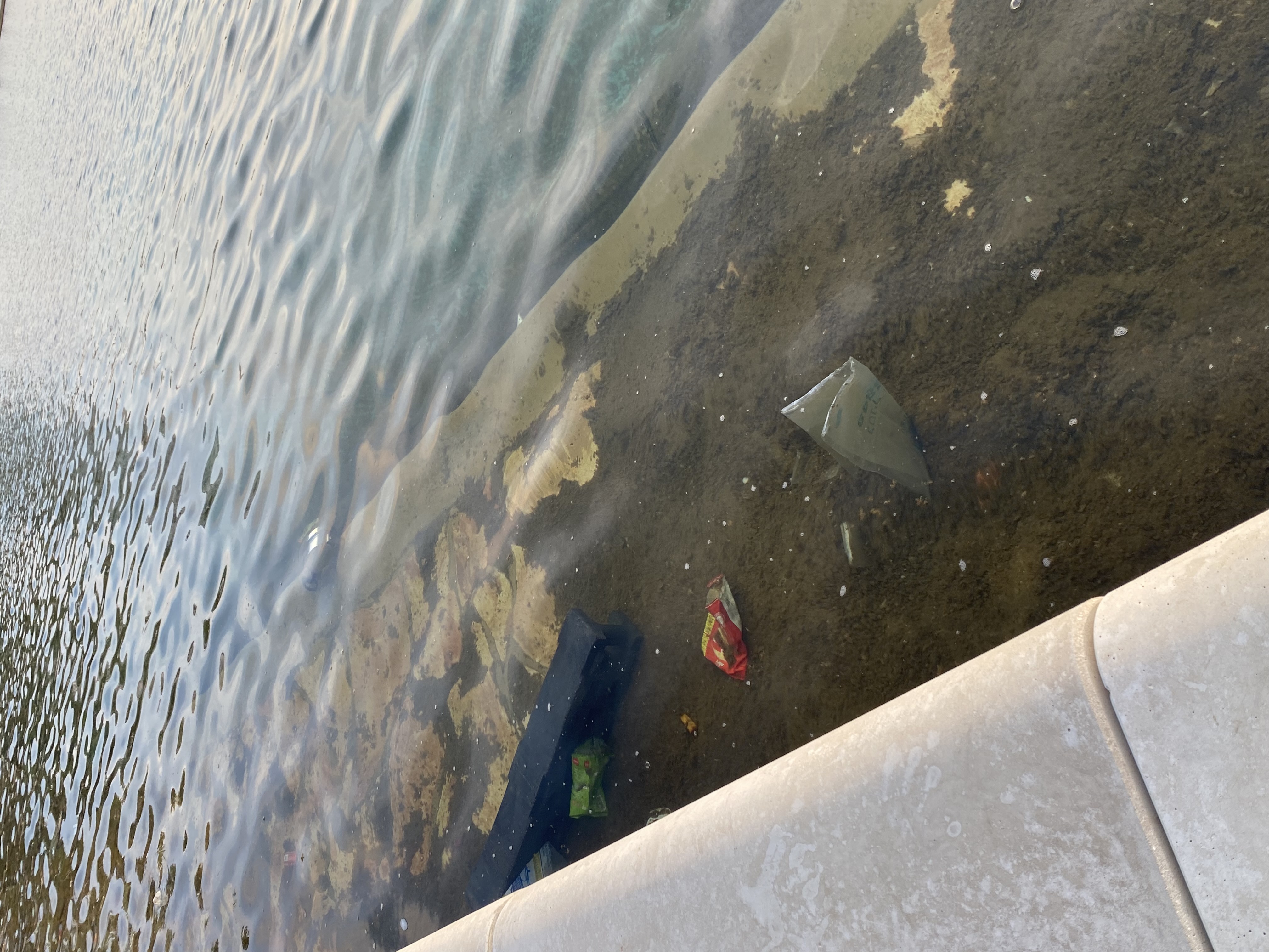 באגם עצמו היו שאריות אשפה, הכוללת בקבוקים, שאריות של חטיפים ואפילו גדרות בטיחות שנזרקו לתוך האגם.