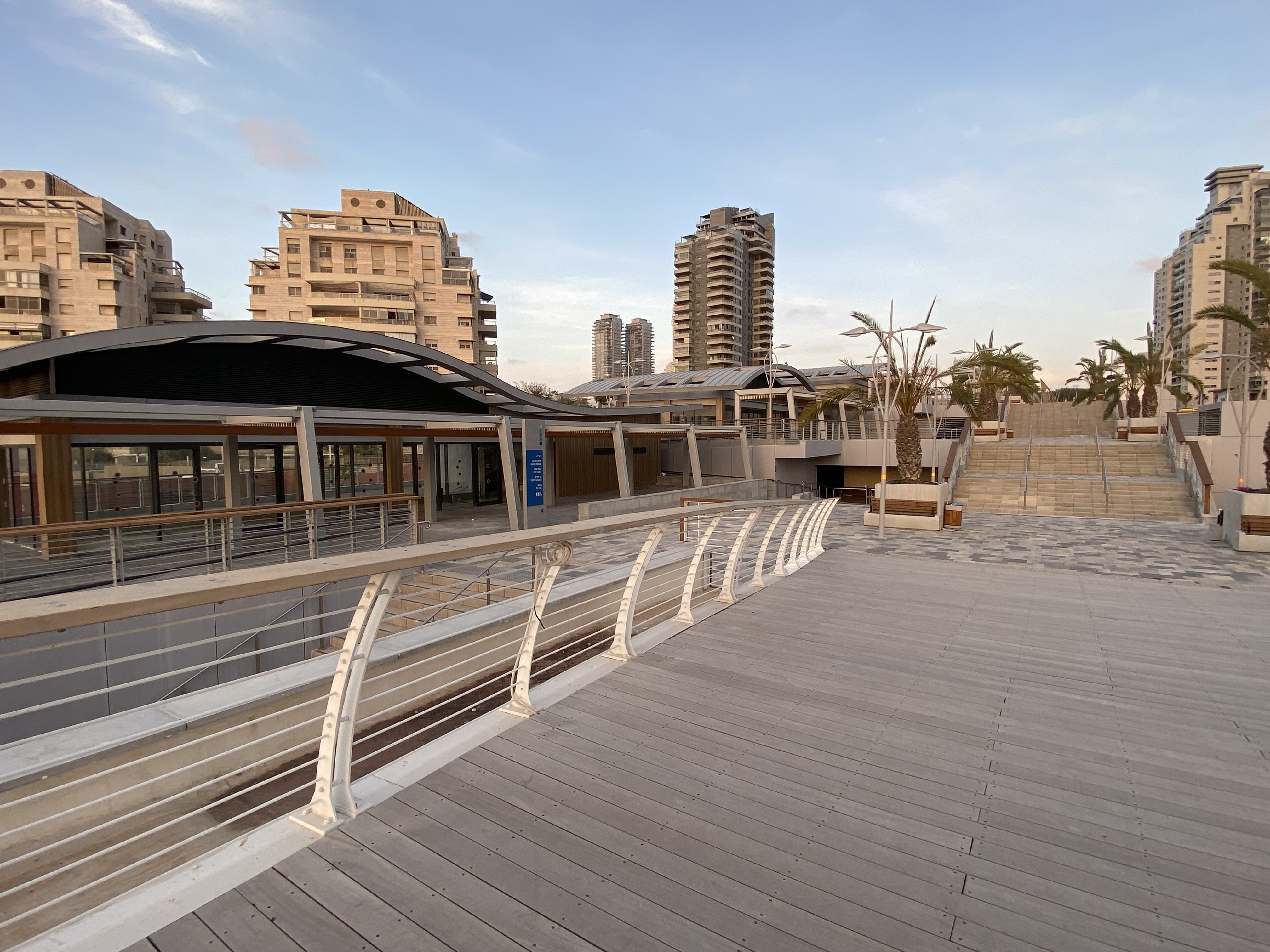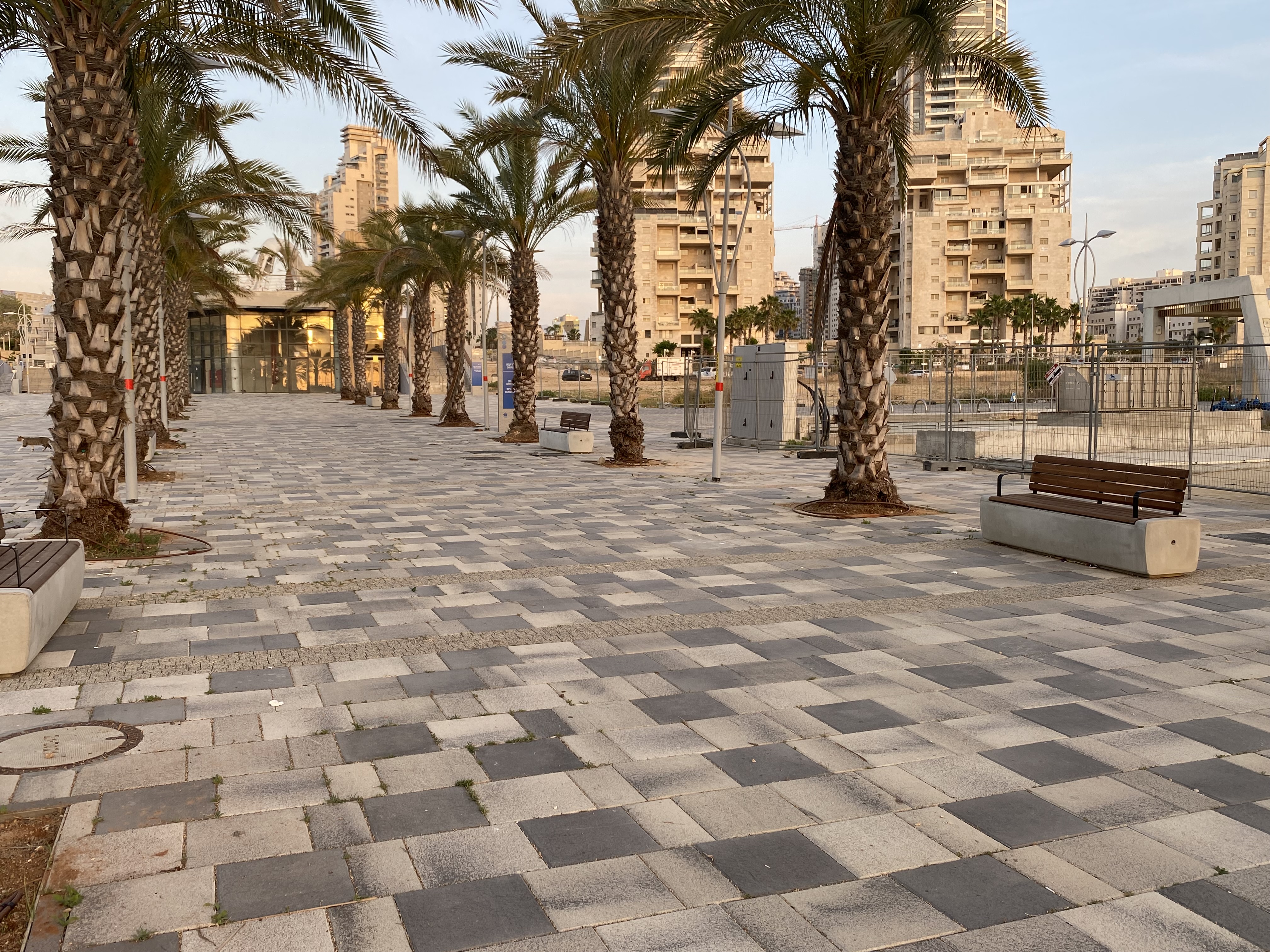 באיזור החנויות וגשר הולכי הרגל עדיין ניכר שהעבודות לא הסתיימו - כך גם באיזור גן שעשועים שמוקם באחד המתחמים בפארק.