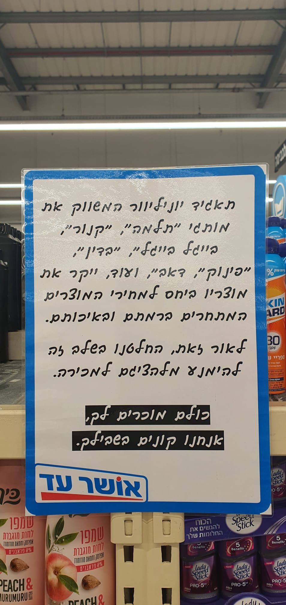 לא מסתפקים בהצהרות: בניגוד לרשתות אחרות שהצהירו כי הן יפעלו להורדת יוקר המחיה ויוזילו את המוצרים, ברשת החרדית 'אושר עד' לא מסתפקים בהצהרות ושם נוקטים במעשים שאמורים להשפיע על סל הקניה של הלקוחות.