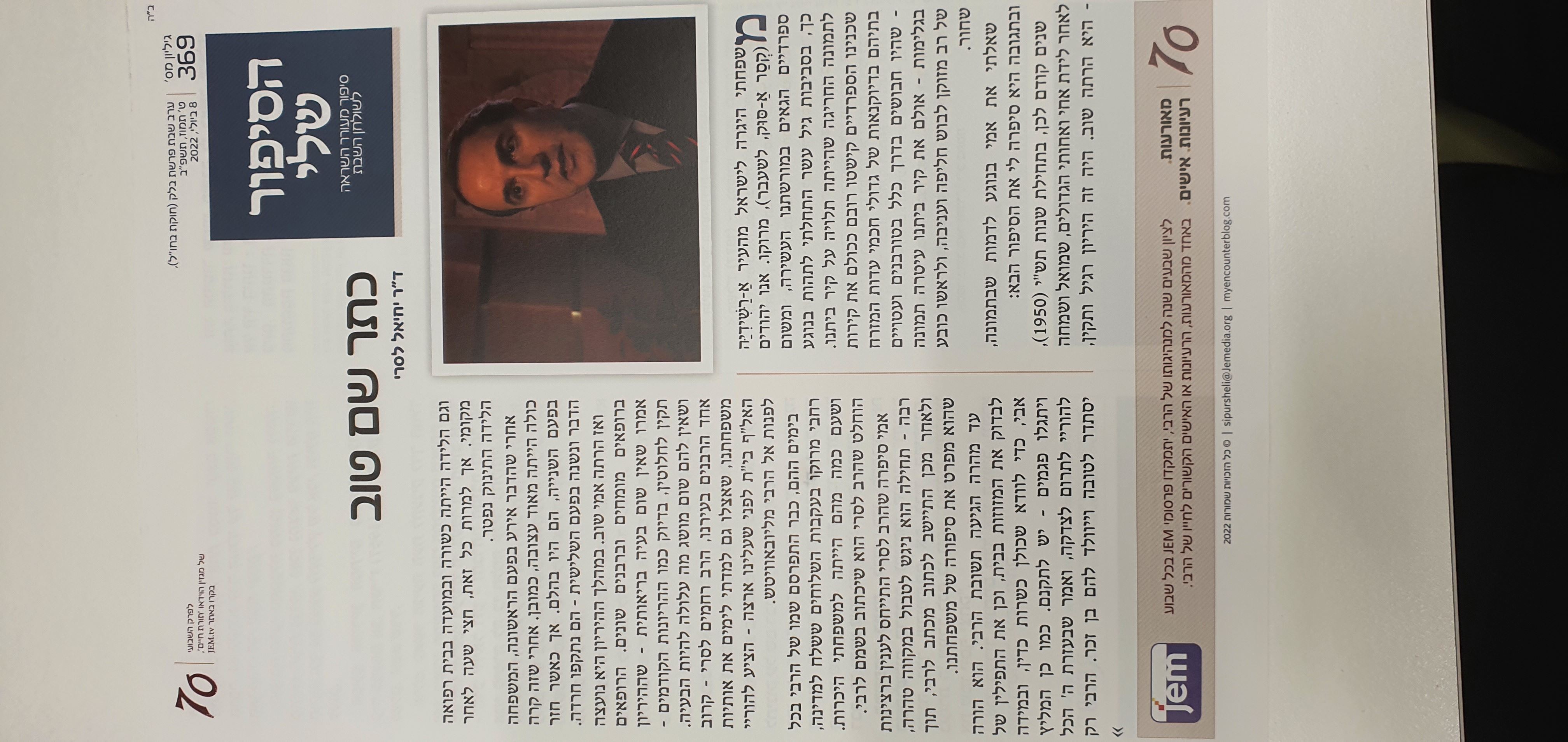 השבוע, בגליון 369 שיראה אור בשבת הקרובה, פרשת 'בלק', מתפרסם סיפורו של ראש עיריית אשדוד, יחיאל שמעון לסרי, תחת הכותרת 'כתר שם טוב'.