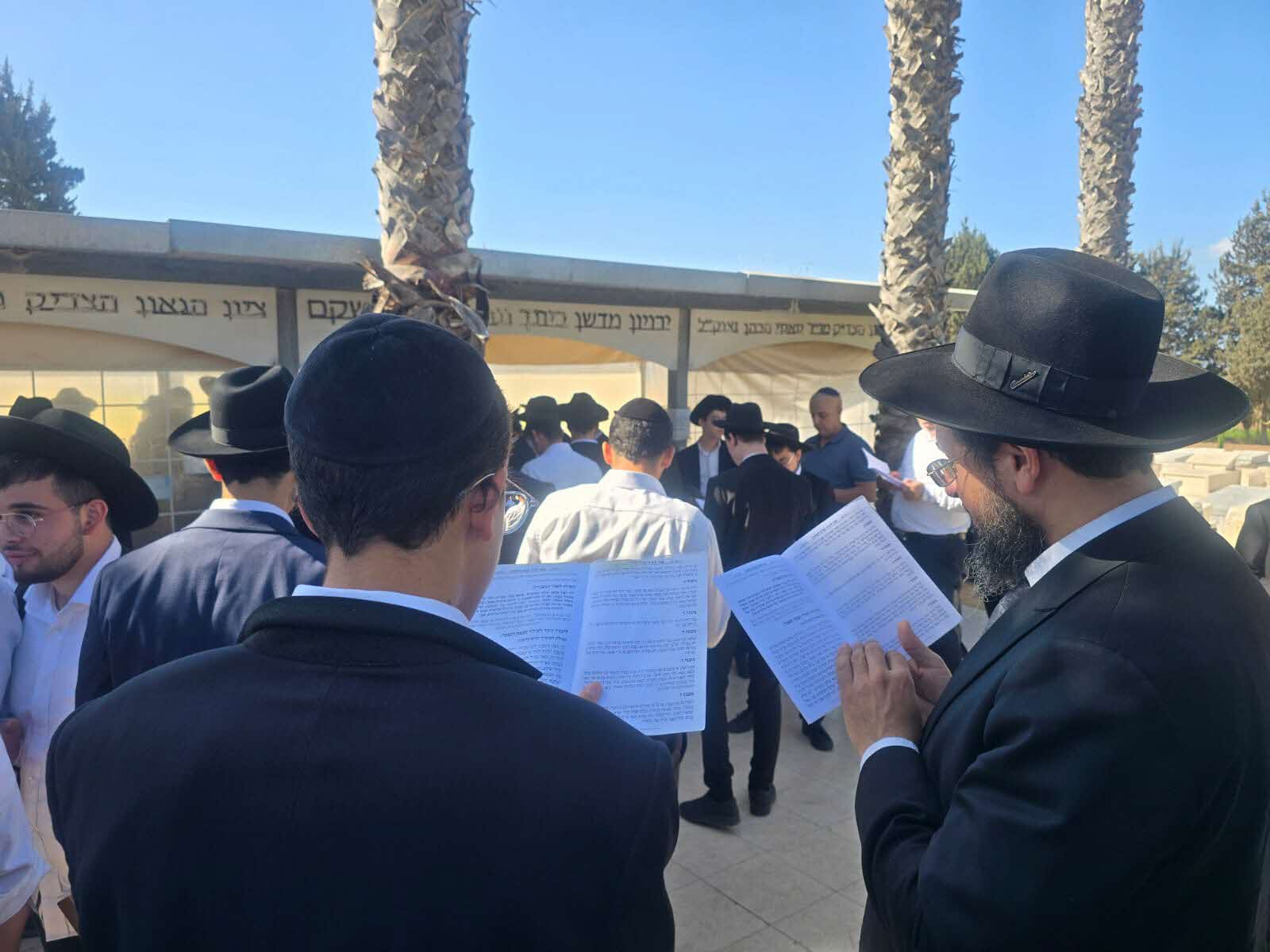 בבוקר לאחר תפילת שחרית בני הישיבה האברכים הרבנים ובני המשפחה עלו והתפללו על קברו בציונו הטמון בבית העלמין במושב, וערכו תפילה וקראו תהילים לזכרו ולע"נ כשבסיום ערכו ברכת 'מי שבירך' לכל בני הישיבות ובני המושב וכלל עם ישראל שיזכו בקרוב לישועה ולגאולה השלמה בקרוב.