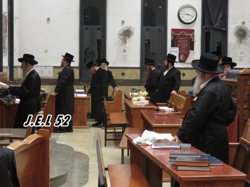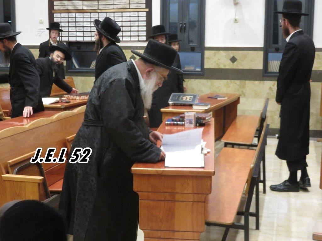 ציבור הלומדים ותושבים שהיו באזור, נכנסו במהירות לבית המדרש כדי לזכות להתפלל במנין יחד עם הרב האורח. לפני התיבה עבר אחיו הרה"צ רבי שלמה למברגר אב"ד מאקאווא אשדוד.