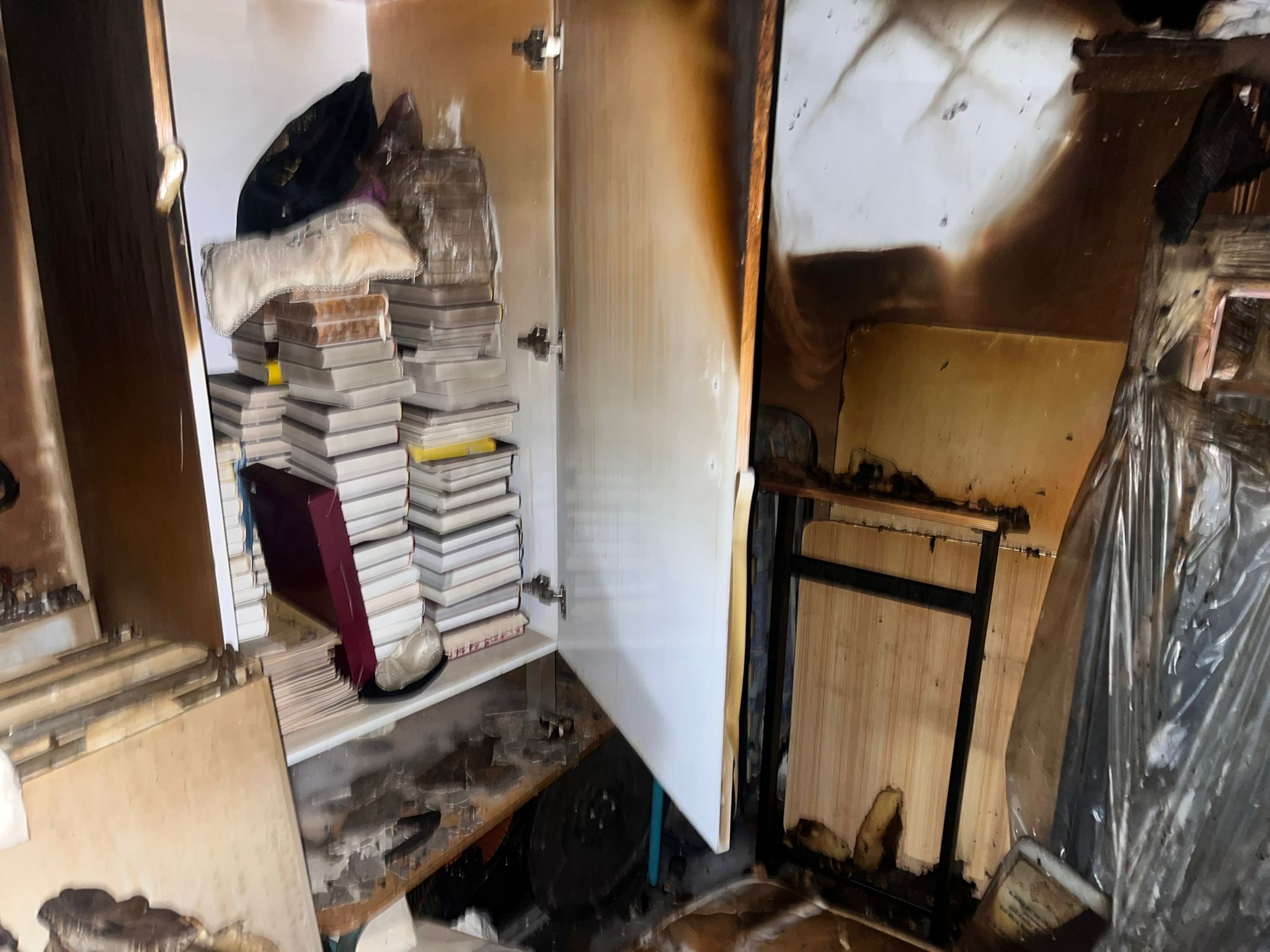 לא ייאמן: מחסן הגמ"ח עלה באש ורק ספרי הקודש נותרו ללא פגע (וידאו)