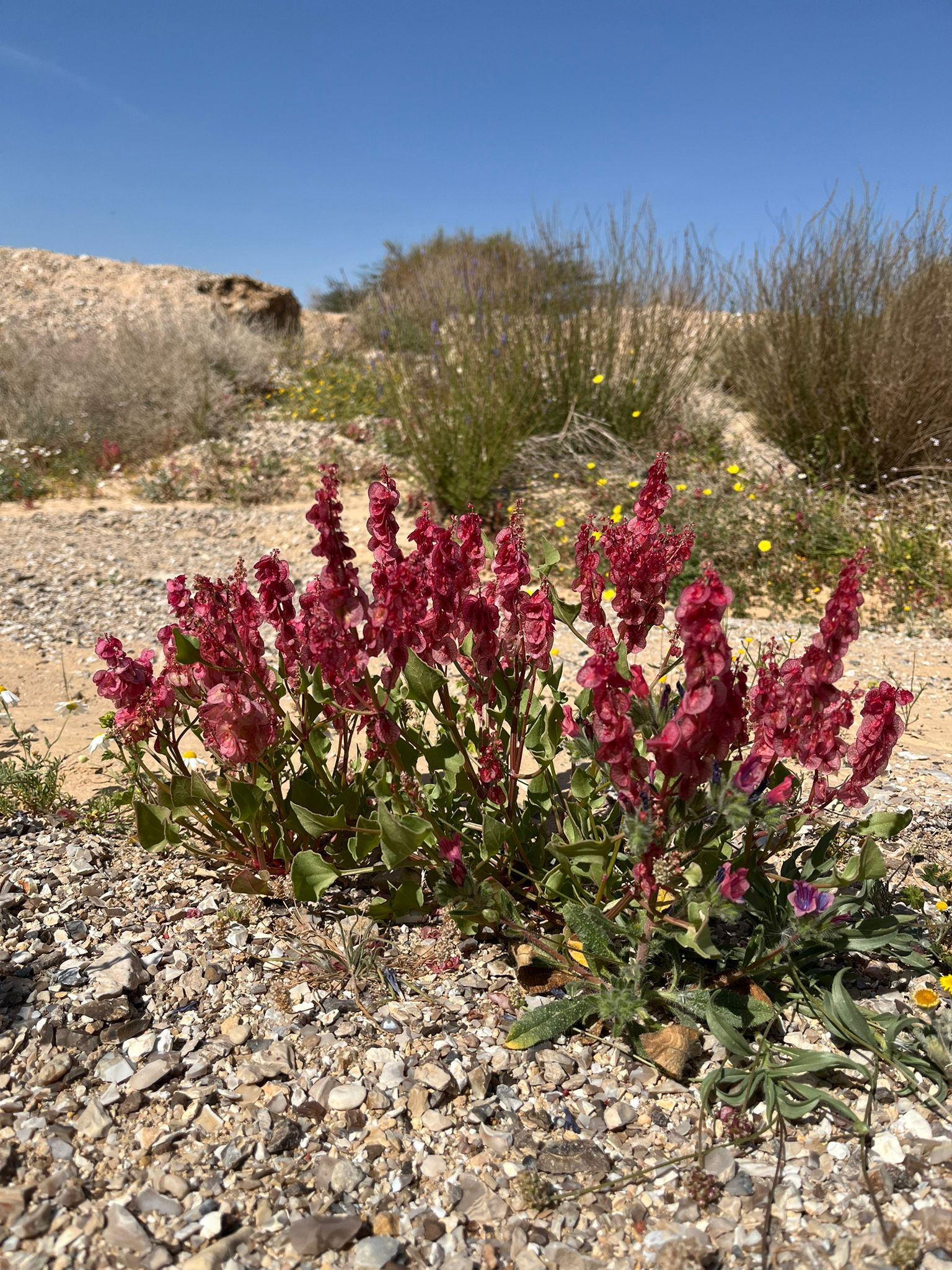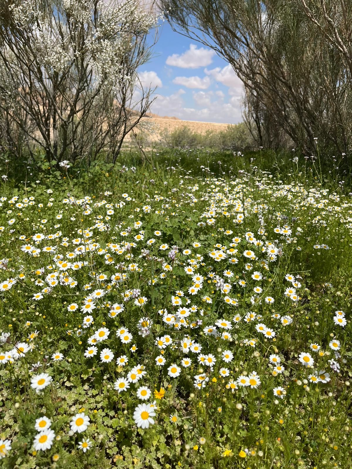 כאילו לא מתעופפים טילים מעל ראשנו, בימים אלו נראית לה פריחה מרהיבה בטבע, ובעיקר במדבר שנצבע בצבעים עזים. ד״ר דותן רותם מנהל אגף ממשק וניטור שמורות טבע ברשות הטבע והגנים הסביר כי "המערכת האקולוגית של המדבר הצחיח יכולה להפתיע. כשהיא במצבה הצחיח 'הרגיל' אנחנו נהנים ממרחבים חשופים מלוא העין. אבל בשנים בהם יורד גשם משמעותי כמו השנה, אזורים שונים במדבר נצבעים בשלל צבעים ובעיקר של מינים בני חלוף.
