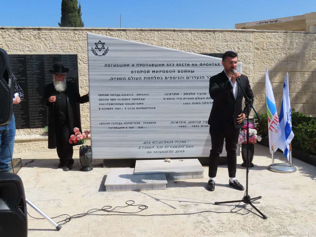בטקס נשאו דברים סגן ראש העיר מר סניה כצנלסון כשבפתח דבריו קידם בברכה את הרב עובדיה דהן יו"ר המועצה הדתית המגיע לכבד מידי שנה בשנה כאן איתנו לזכור את קדושי השואה, הנעדרים והנספים במלחמת העולם השניה באוקראינה.