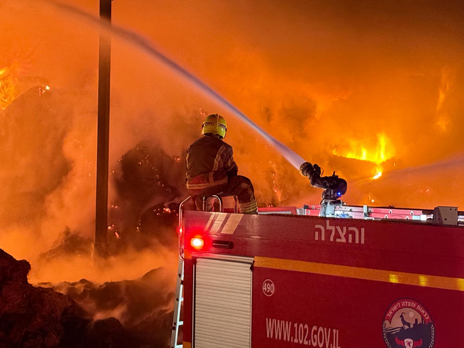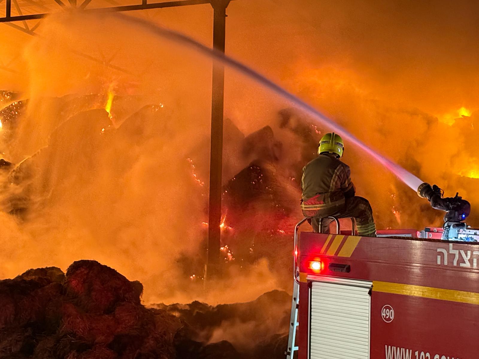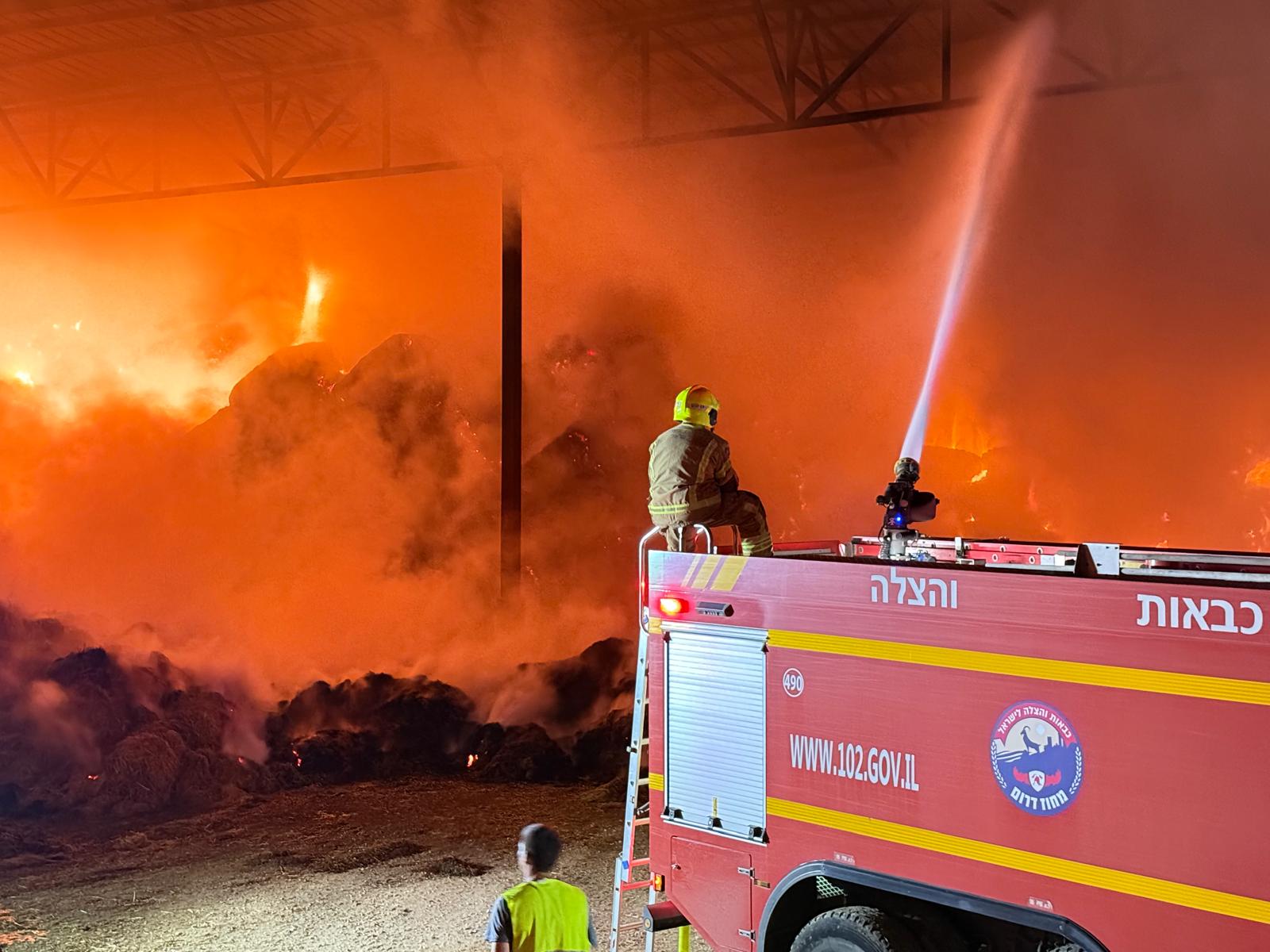 אמש: לוחמי האש טיפלו בשריפה משתוללת בהאנגר חקלאי סמוך לאשדוד (תמונות ווידאו)