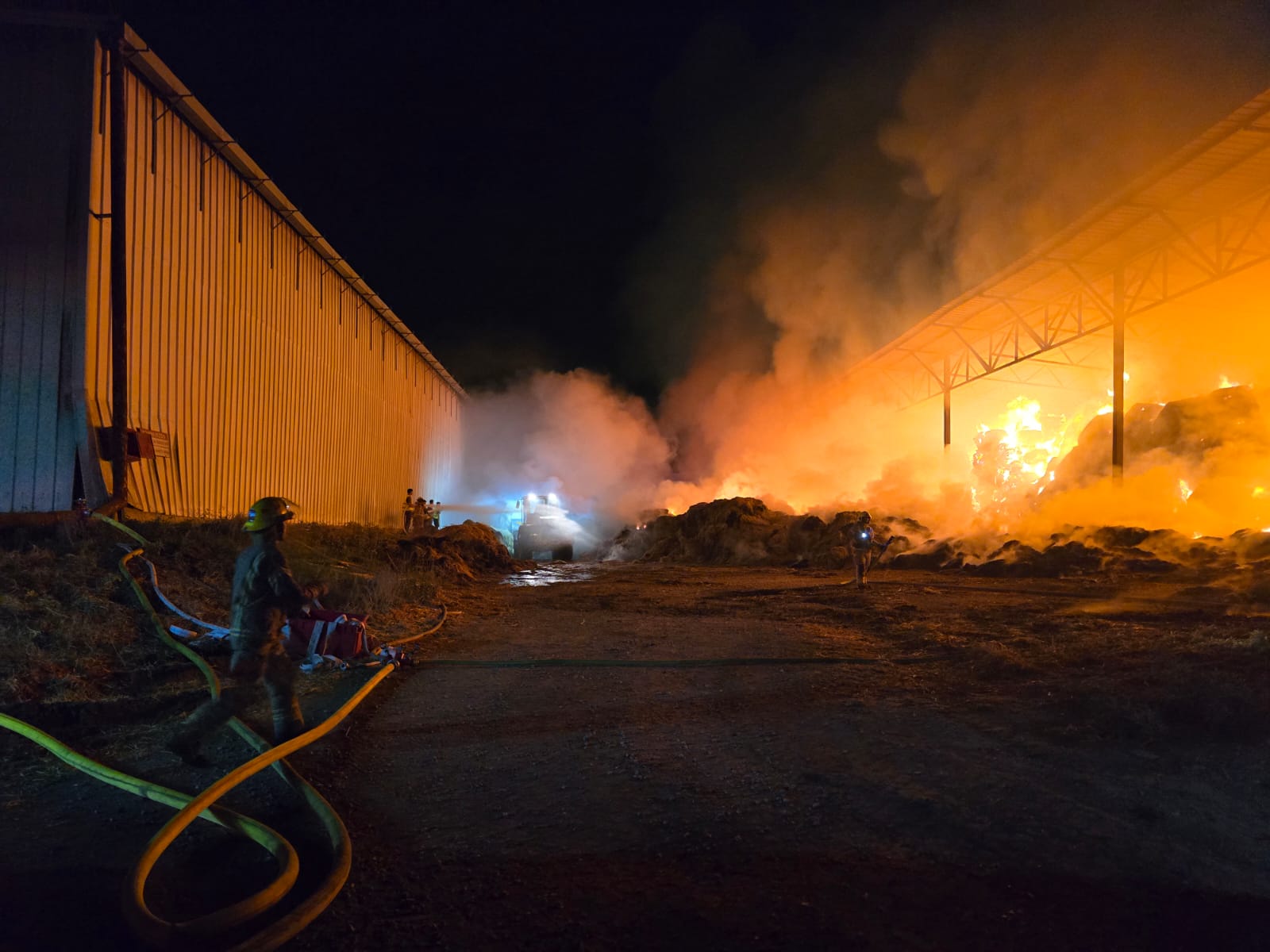 מדובר היה בשריפה של האנגר ושל מתבן, כאשר מזג האוויר החם והרוחות החזקות באזור גרמו להתפשטות הלהבות.