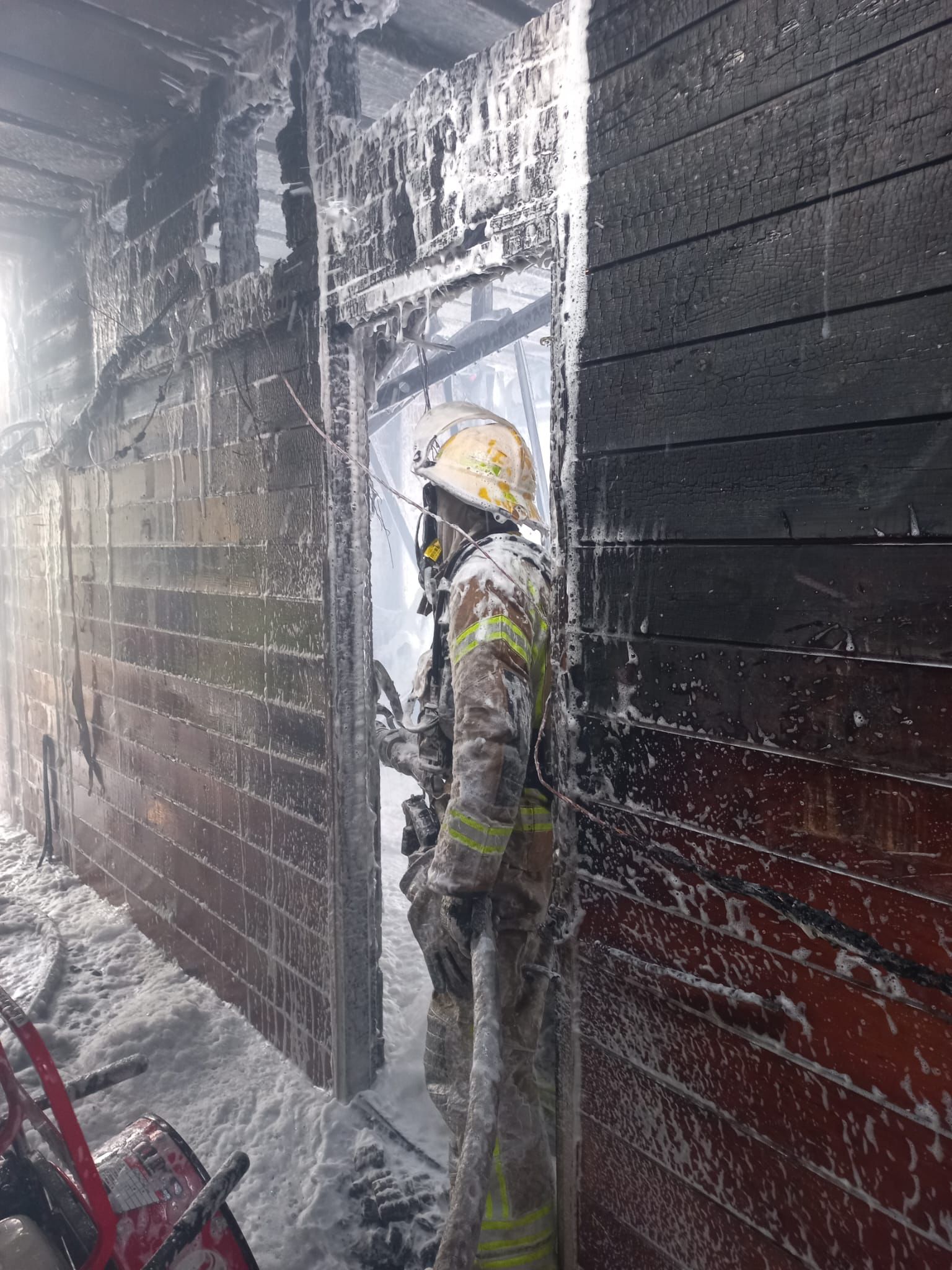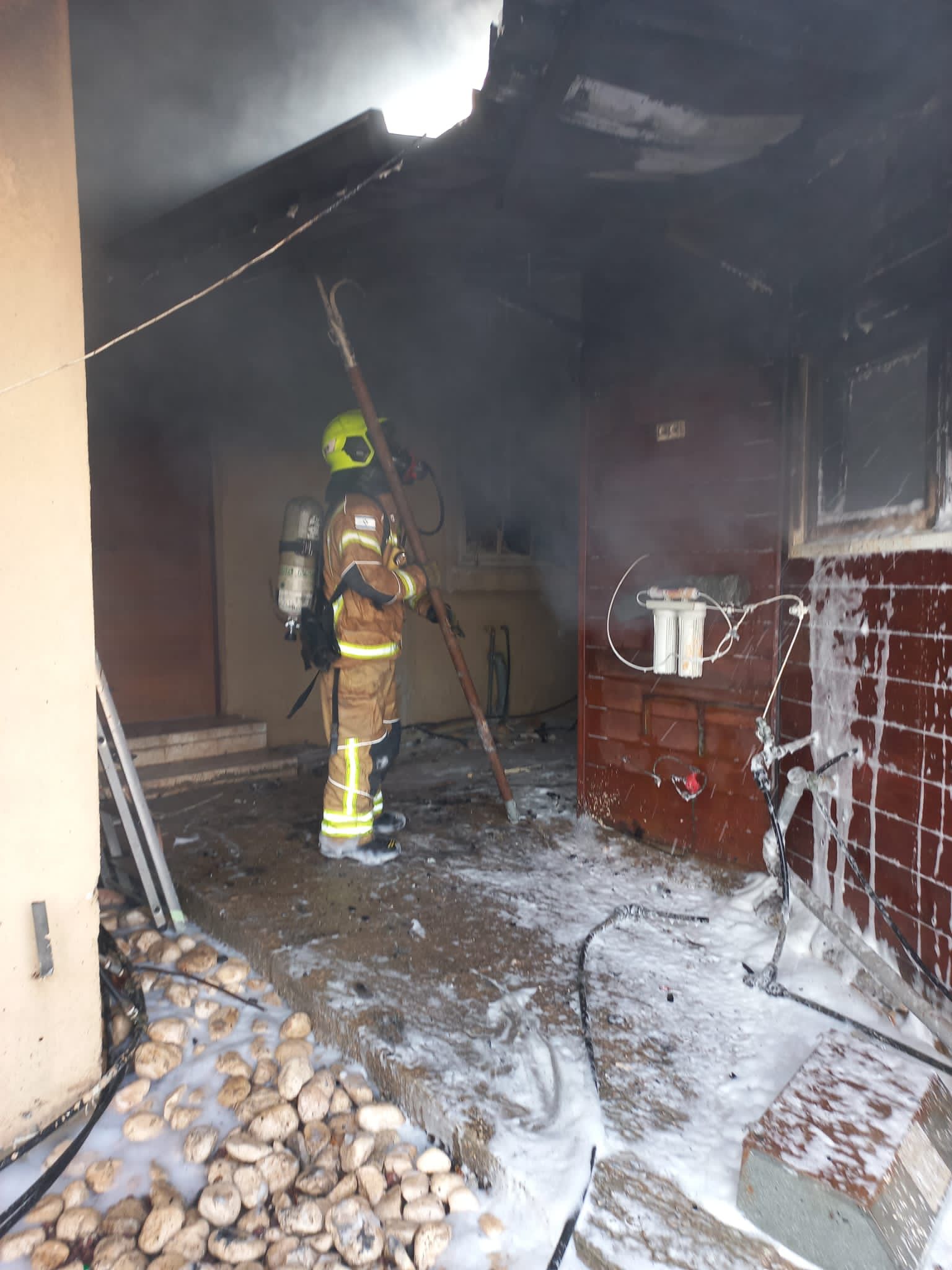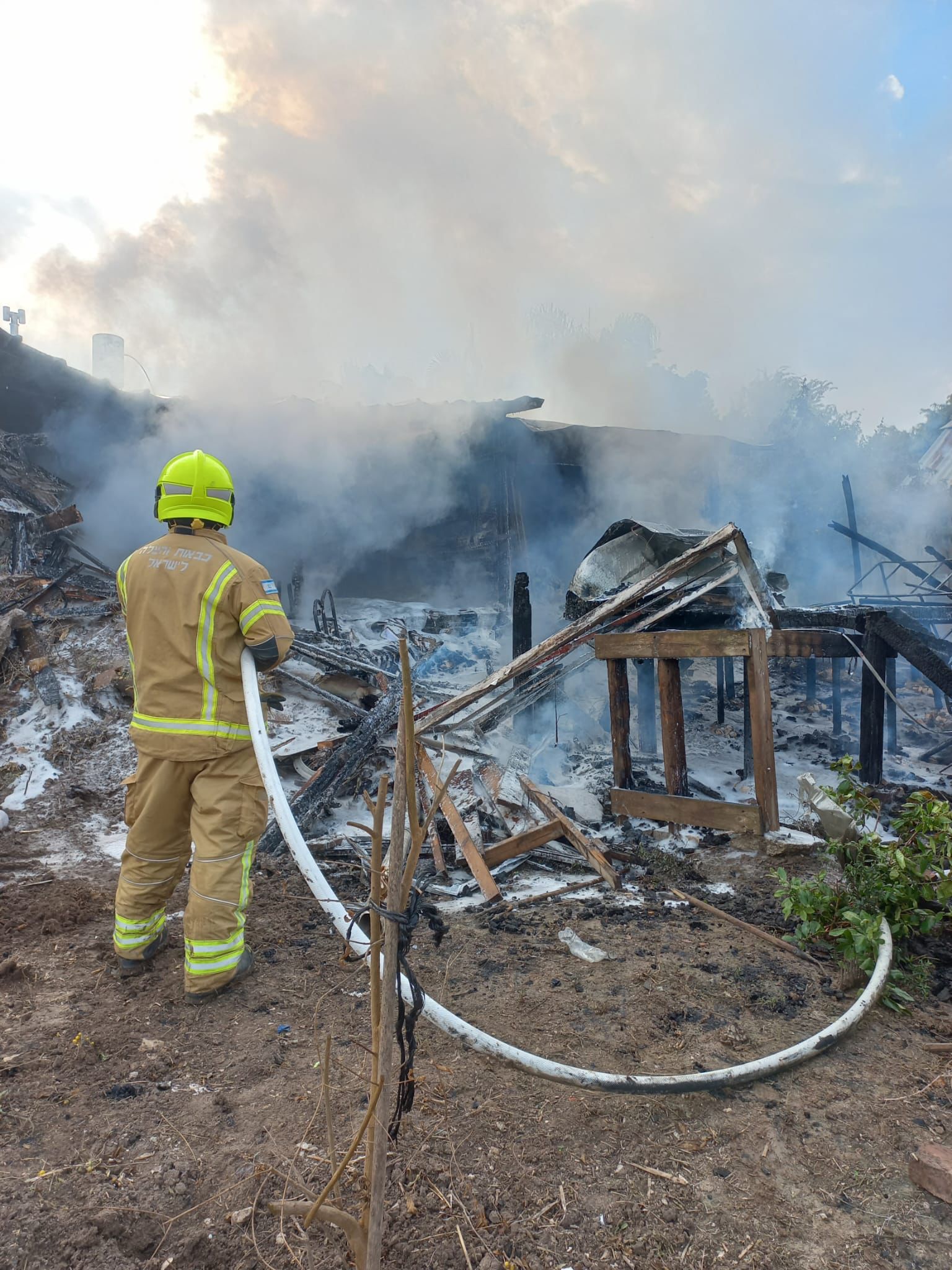 "במהלך השריפה הבחנו שיש מספר בלוני גז וסכנת קריסה של חלק מהמבנה שנשרף כליל. נוצר קשר עם בעל הבית לוודא שלא היו אנשים במקום. במקביל לוחמי האש ביצעו מספר סריקות במבנה לשלול לכודים נוספים."