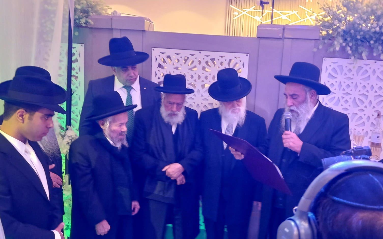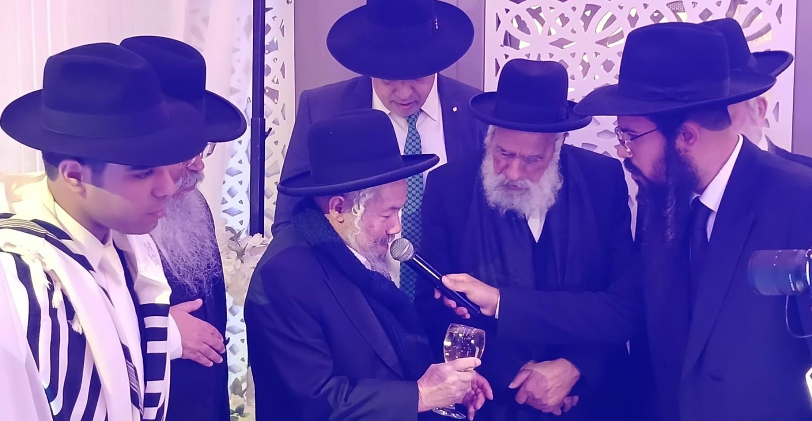 קול ששון וקול שמחה: יממה לאחר בחירתו של ראש העיר ד"ר לסרי ברוב מוחץ, זכה לקבל את ברכתו החמה והנלהבת של מרן הגר"ש מחפוד זקן רבני מועצת חכמי התורה בשמחת נישואי נכדו
