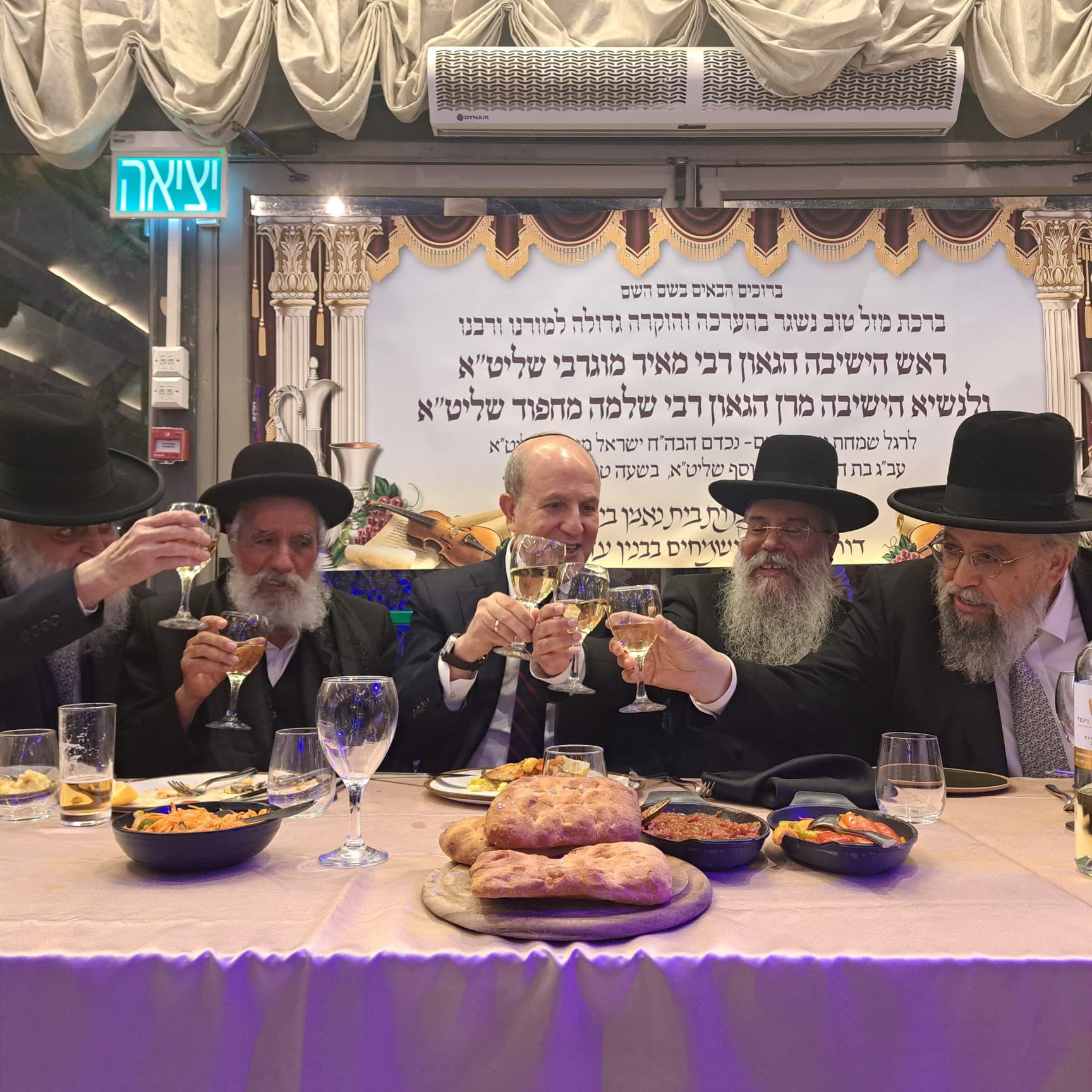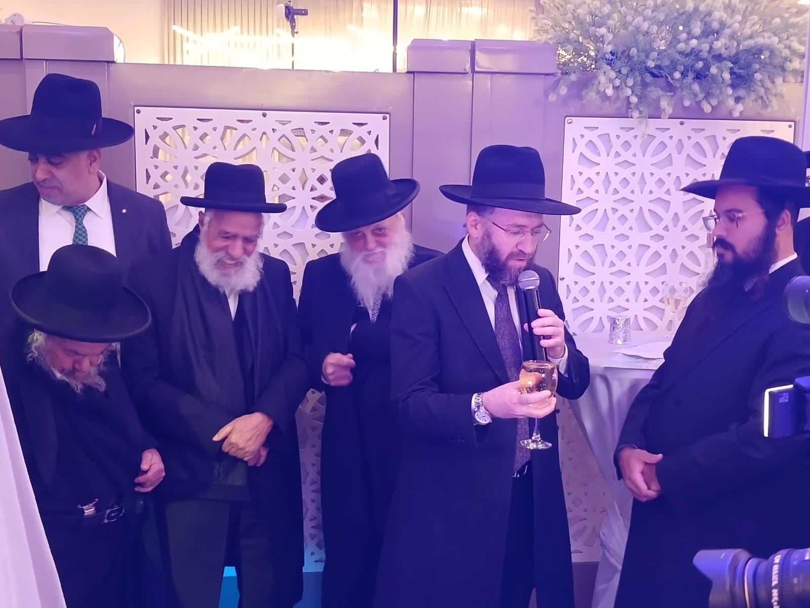אב החתן הגר"מ מוגרבי ראש ישיבת "כנסת ישראל" מזג יין לאורחים, והגר"ש מחפוד ערך "לחיים" יחד עם ראש העיר ושוב בירך אותו בברכה והצלחה להגדיל תורה ולהאדירה בעיר אשדוד ושיראה ברכה בכל מעשי ידיו.
