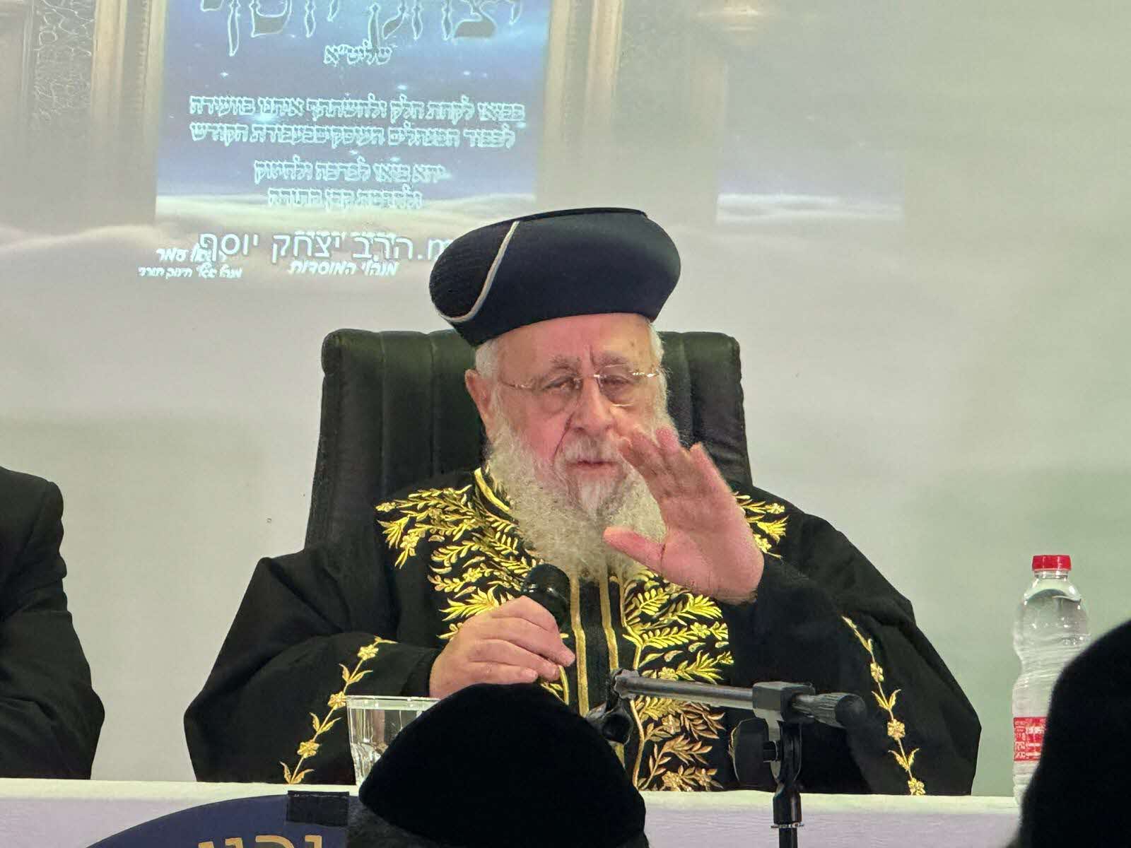 אתמול זכו המנהלים לשמוע את דבריו של הראשל"צ הרב יצחק יוסף שליט"א, שהגיע למקום כשהוא מלווה בממ"ק רה"ע ר' אבי אמסלם. הראשל"צ עמד על חשיבות תפקידו של המחנך בישראל, ושם דגש על הדרישות הייחודיות מצידם של המחנכים העוסקים בחינוכם של הדורות הבאים.