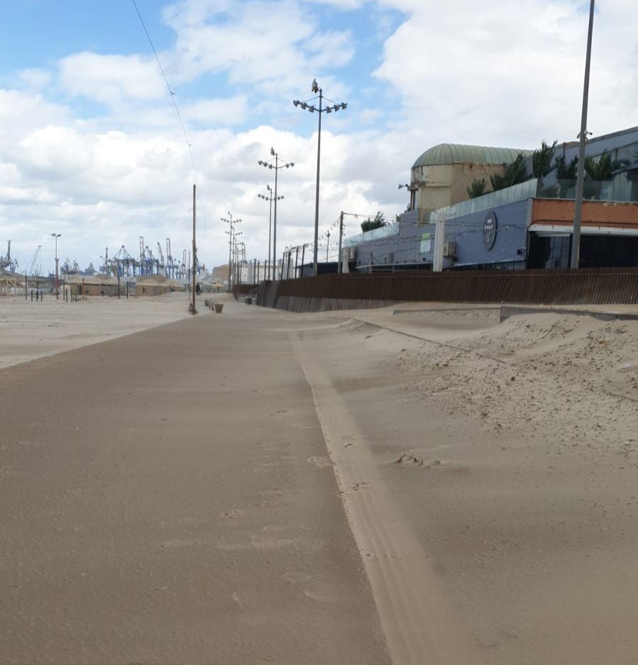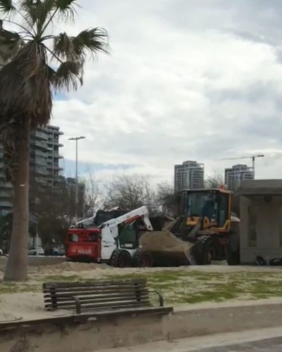 החול חזר למקומו: מנהלת רצועת החוף והמרינה, אגף הנטיעות והמוקד העירוני שילבו כוחות במטרה לתת מענה לכמות העצומה של החול שעף, והפעילו לטובת העניין כלים כבדים על פי תוכנית סדורה של מנהלת החוף.