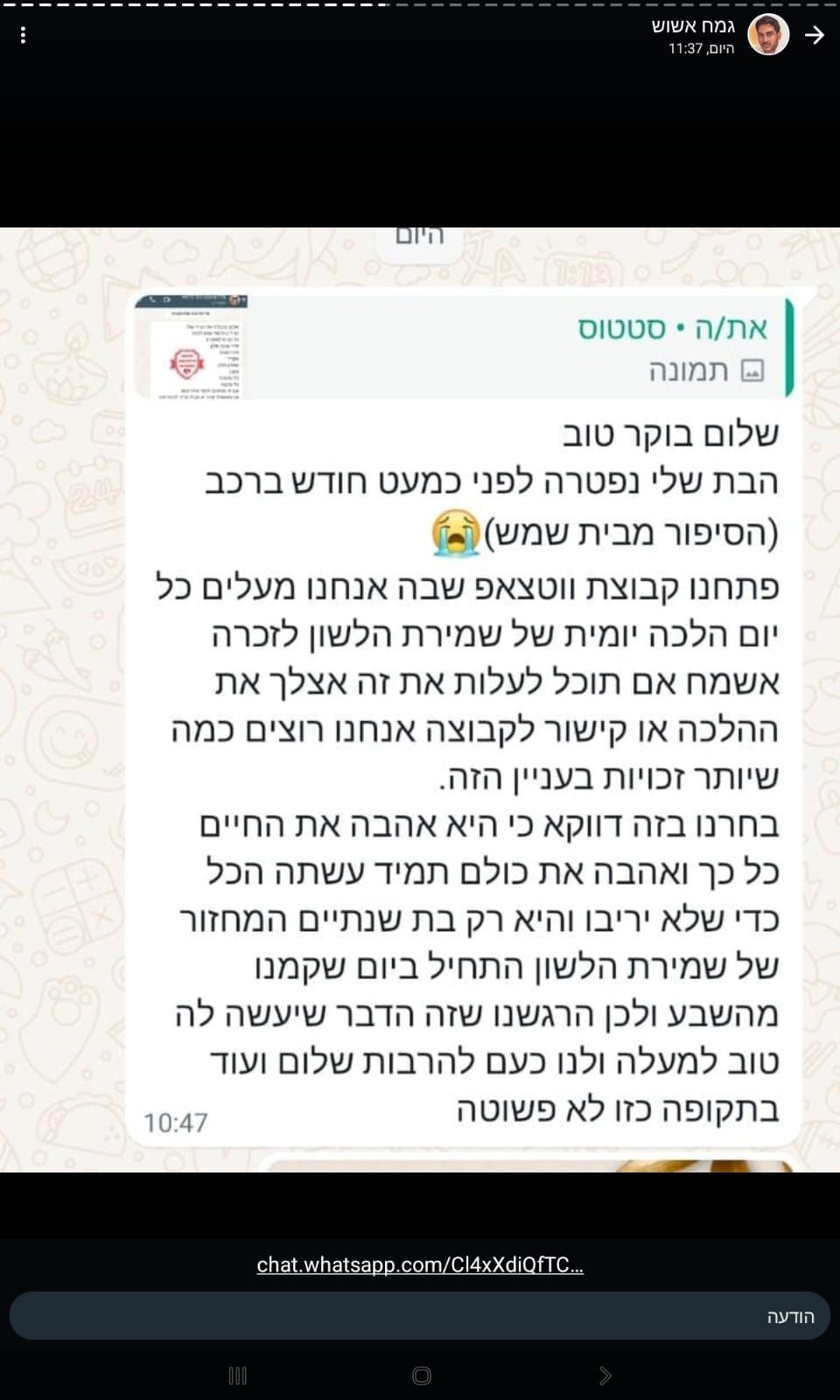 זה החל עם הודעה אותה העלה אשוש ובה סיפר כי אחד העוקבים מבקש לערוך בביתו שמחת שבע ברכות לחתן וכלה מעוטי יכולת, כאשר איש החסד האלמוני מציע לשם כך את ביתו, ואת השמחה כולה מהחל ועד גמירא.