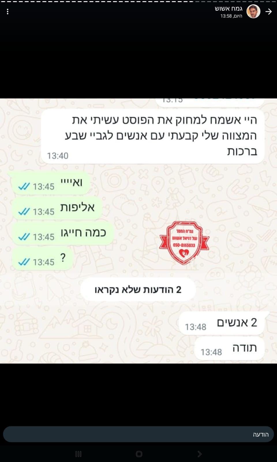חשבתם שבקבוצת החסד של דניאל אשוש מתעסקים רק במסירת חפצים? אתמול זכו שם חתני בר מצווה מעוטי יכולת לבר מצווה מפוארת, חתן וכלה זכו לשמחת שבע ברכות וכן לאיפורים חינם, ואפילו לתיקוני שפכטל | חסד מידבק
