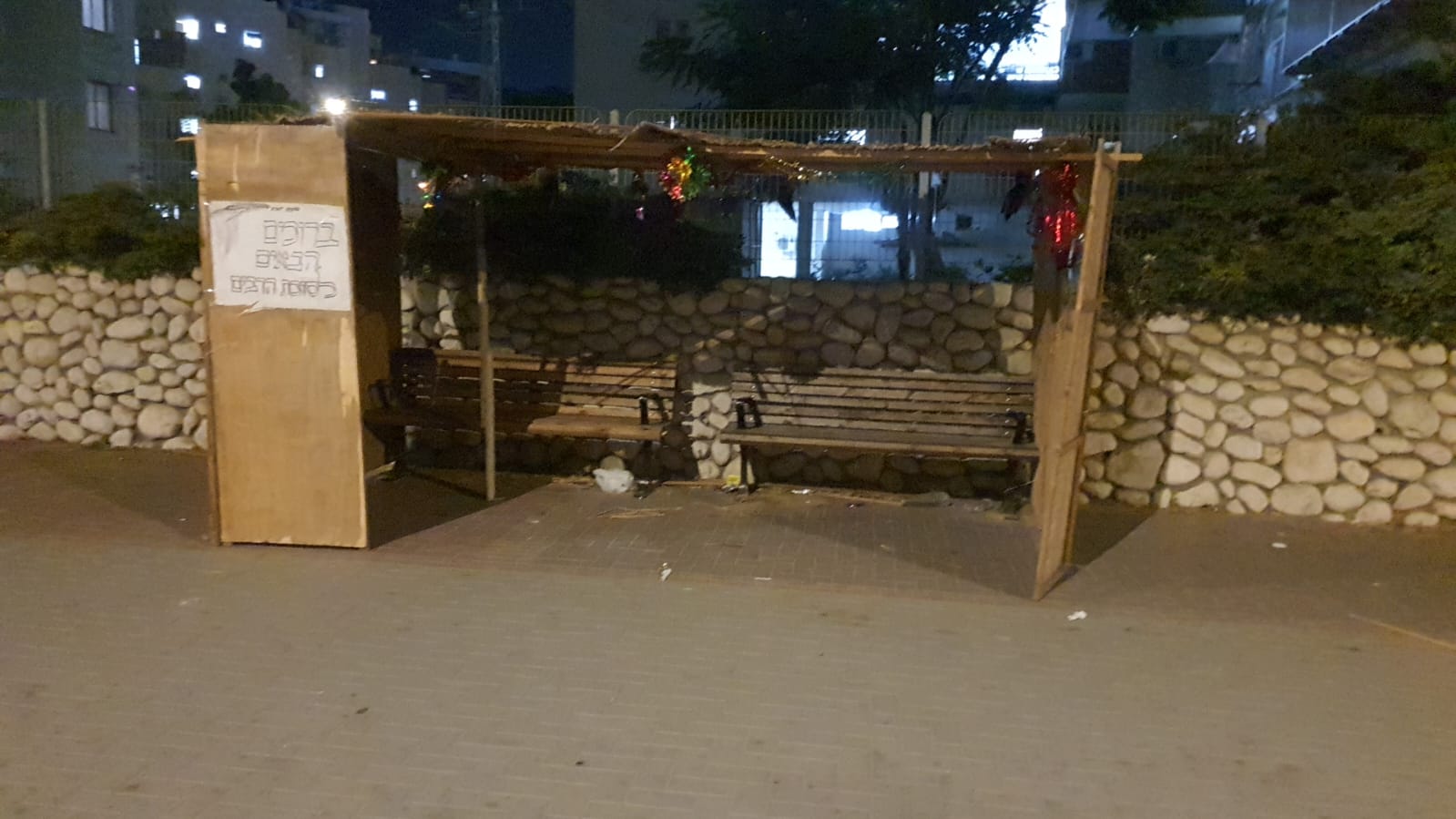 הנוסעים הרבים הממתינים כדבר שבשגרה לצד תחנת האוטובוסים העמוסה הידועה בשמה 'תחנת נשכיז' שברח' רח' שטח, הופתעו לגלות סוכה שאותה דאג להקים אי מי לטובת הנוסעים.