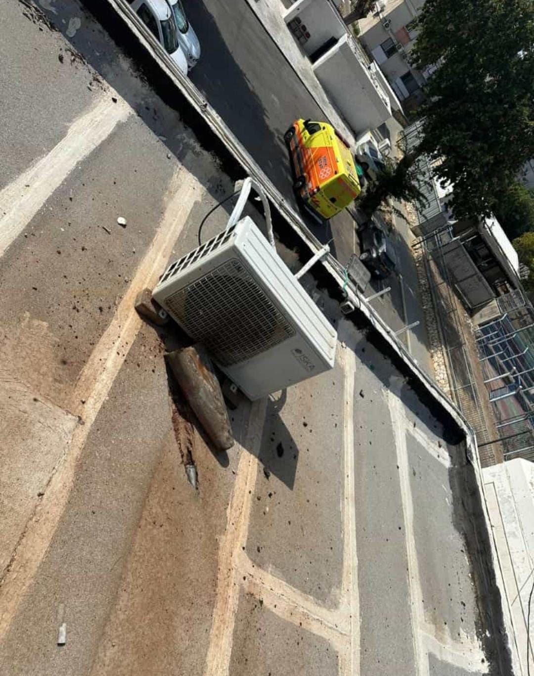 להפתעתו, גילה  בסמוך למנוע המזגן נפל של טיל כיפת ברזל. הרסיס שלא הכיל חומר נפץ נבדק והתבר ככזה שלא מהווה סיכון, והוא פונה מהגג לאחר שהתברר שלמעט הפגיעה בכבלי התקשורת לא נגרמו על ידו נזקים.