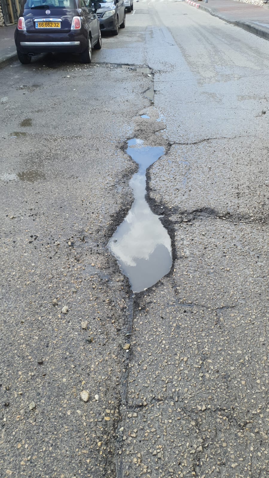 מדובר ברח' רבינא ברובע ז'. בתמונות המצורפות ניתן לראות כיצד הבקיעים שנוצרו בו במקטע הקרוב ליהודה הנשיא ריטשוהו כמעט לחלוטין ומקשים על הנוסעים עליו.