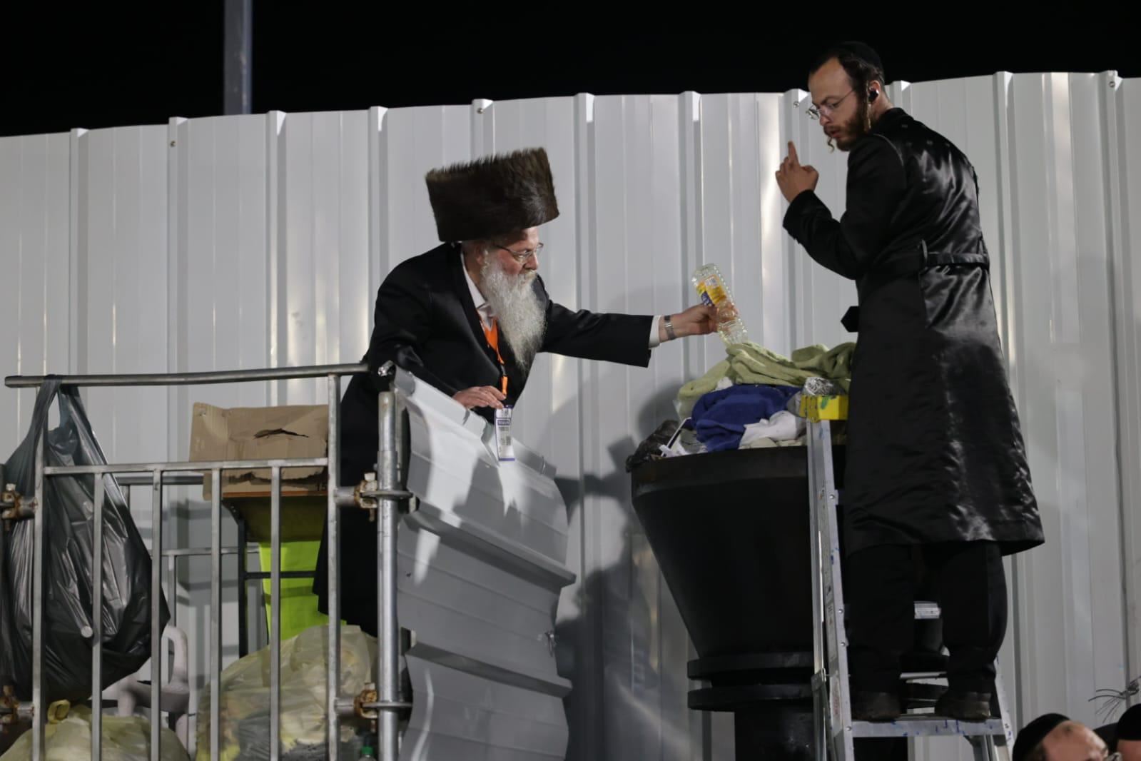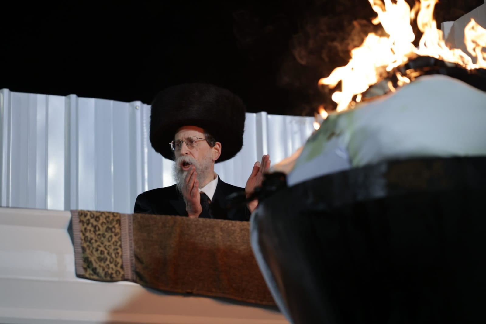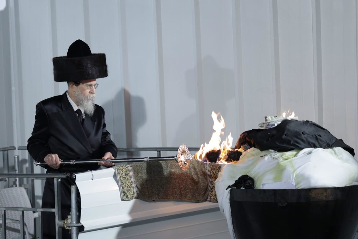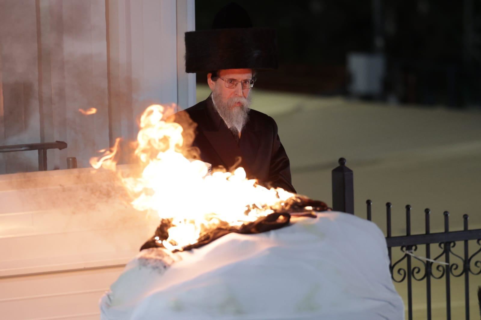 כשמניין אנשים על הגג הדליק מרן האדמו"ר שליט"א נר לעילוי הנספים באסון מירון בשנת תשפ"א, ולאחר מכן העלה את האש בשתי האבוקות אשר על גג הציון הקדוש כמסורת אבותיו ופצח בריקוד נרגש.