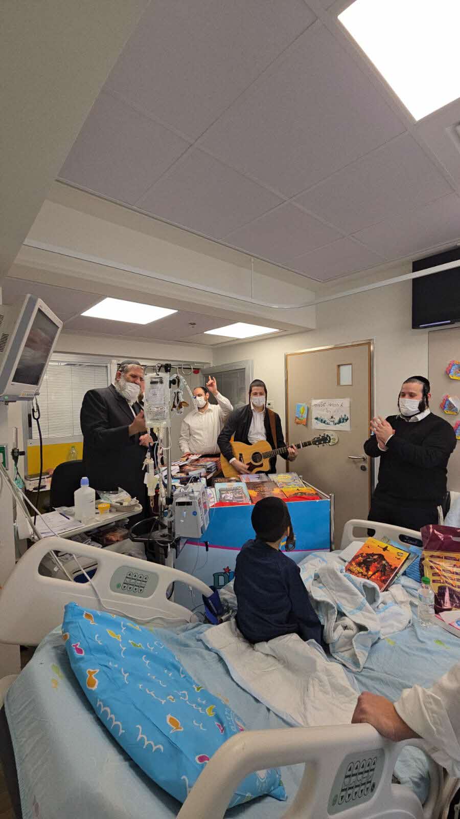 לסבב המחלקות הצטרפו הזמר משה דוד וייסמנדל והגיטריסט יענקי קופילוביץ, שהנעימו את הזמן בשירה ונגינה, והוסיפו ממד של שמחה וחיזוק רוחני לילדים ולצוותים הרפואיים.