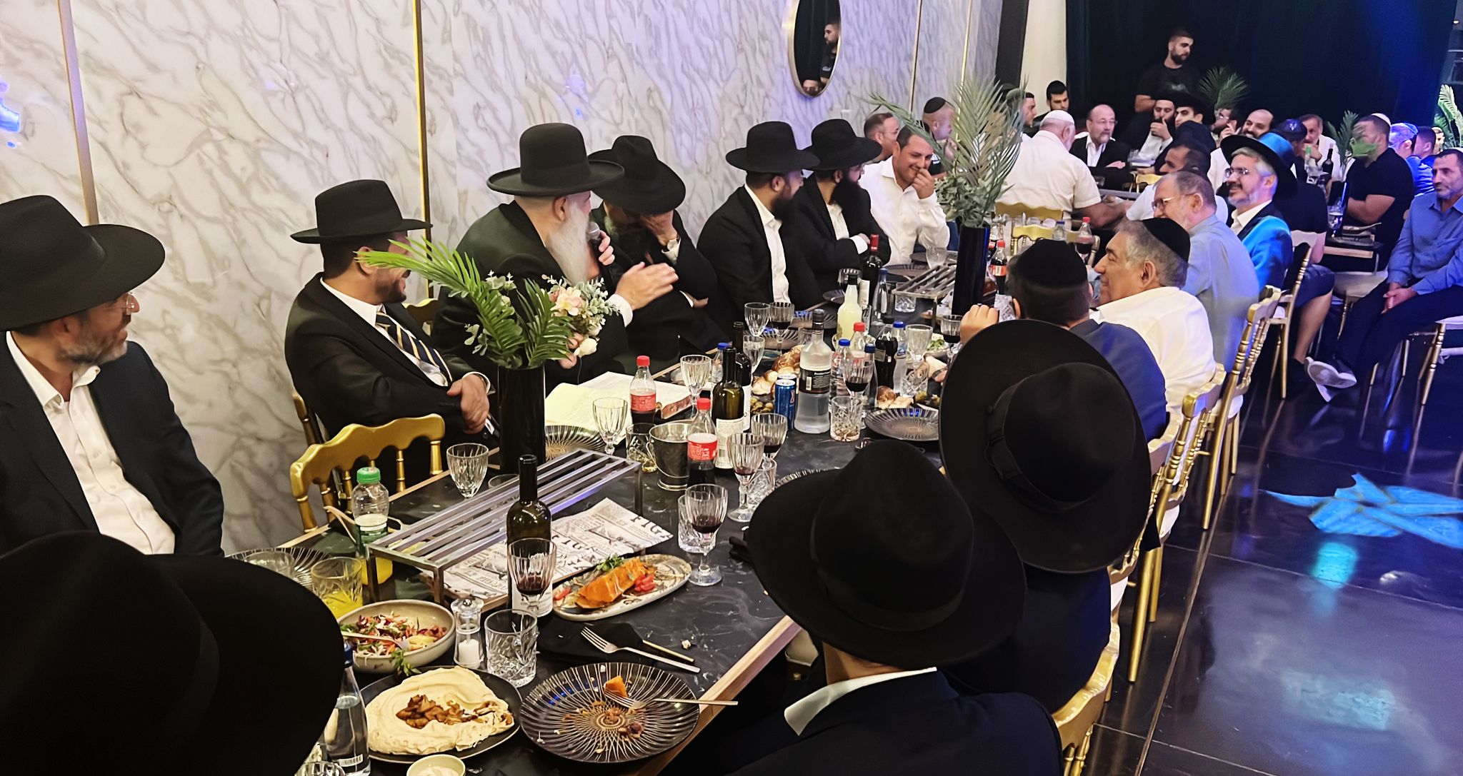 בסיום המצוה לאחר הפדיון, הקהל עבר לברך ולהתברך מהגר"מ אבוחצירא ונגשו לסעודת מצוה ברחבה הפנימית לכל קהל המשתתפים.