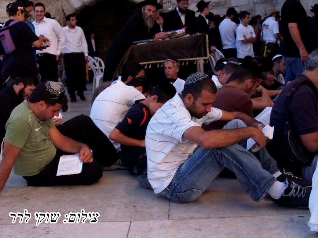 בתמונות אלו נוכל להרגיש את אבלות, צער החורבן של ירושלים בחסרונו של בית מקדשנו ותפארתנו, ניתן לראות יהודים יושבים על הארץ ברחבת הכותל המערבי ועורכים "תיקון חצות".