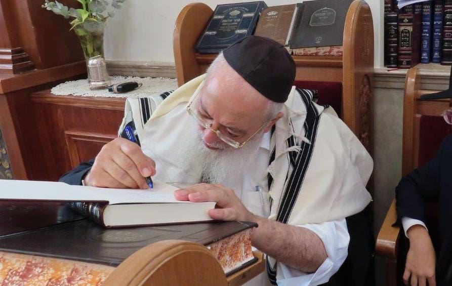 מִנְחַת בִּכּוּרִים: מרן הראשון לציון הגר"ש עמאר העניק את ספרו החדש "קנין תורה" לראש העיר ד"ר יחיאל לסרי בצירוף הקדשה אישית