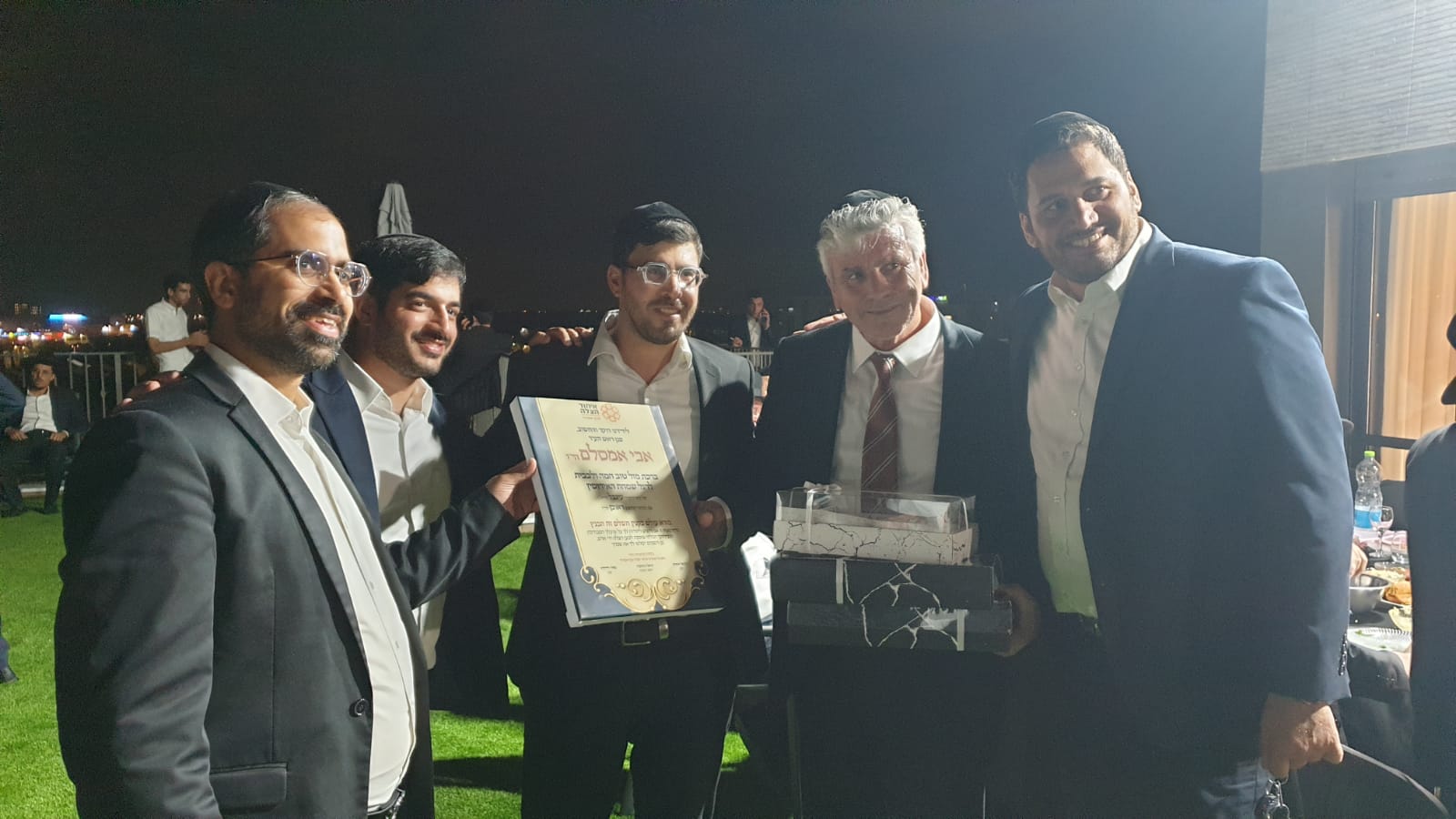שמחה במעונו של ממ"ק רה"ע ר' אבי אמסלם והעסקונה הבכירה בעיר התייצבה לברך. בין הנוכחים: חברי מועצת מש"ס ומאגודת ישראל, יו"ר המועצה הדתית הרב עובדיה דהן, חה"כ הרב ינון אזולאי, רבנים ועסקנים מקומיים