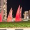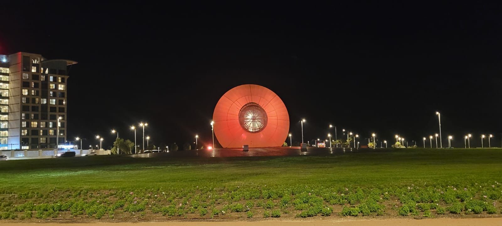 כיכר עין השמש ברובע ט"ו בעיר נצבעה בכתום לאות הזדהות עם כפיר ביבס החוגג יום הולדת שנה בשבי החמאס בעזה.