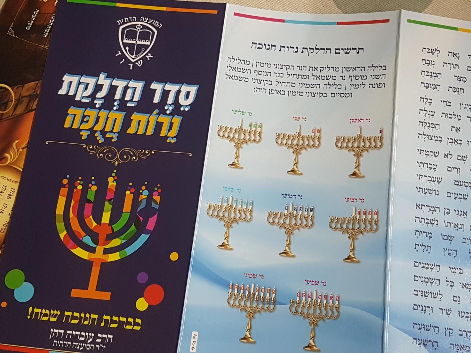 אלפי סדרי 'הדלקת נר חנוכה' חולקו על ידי ראש המועצה הדתית