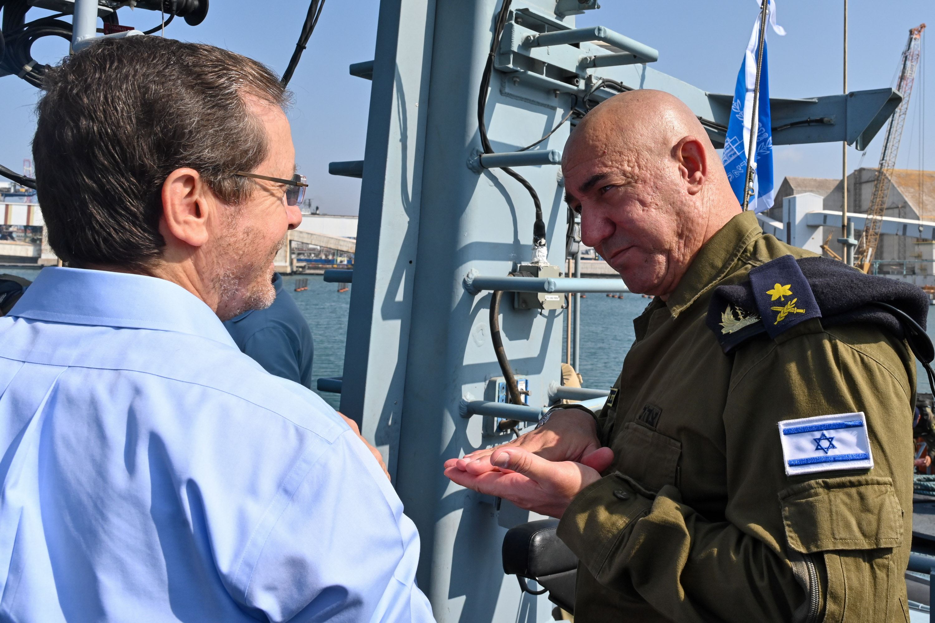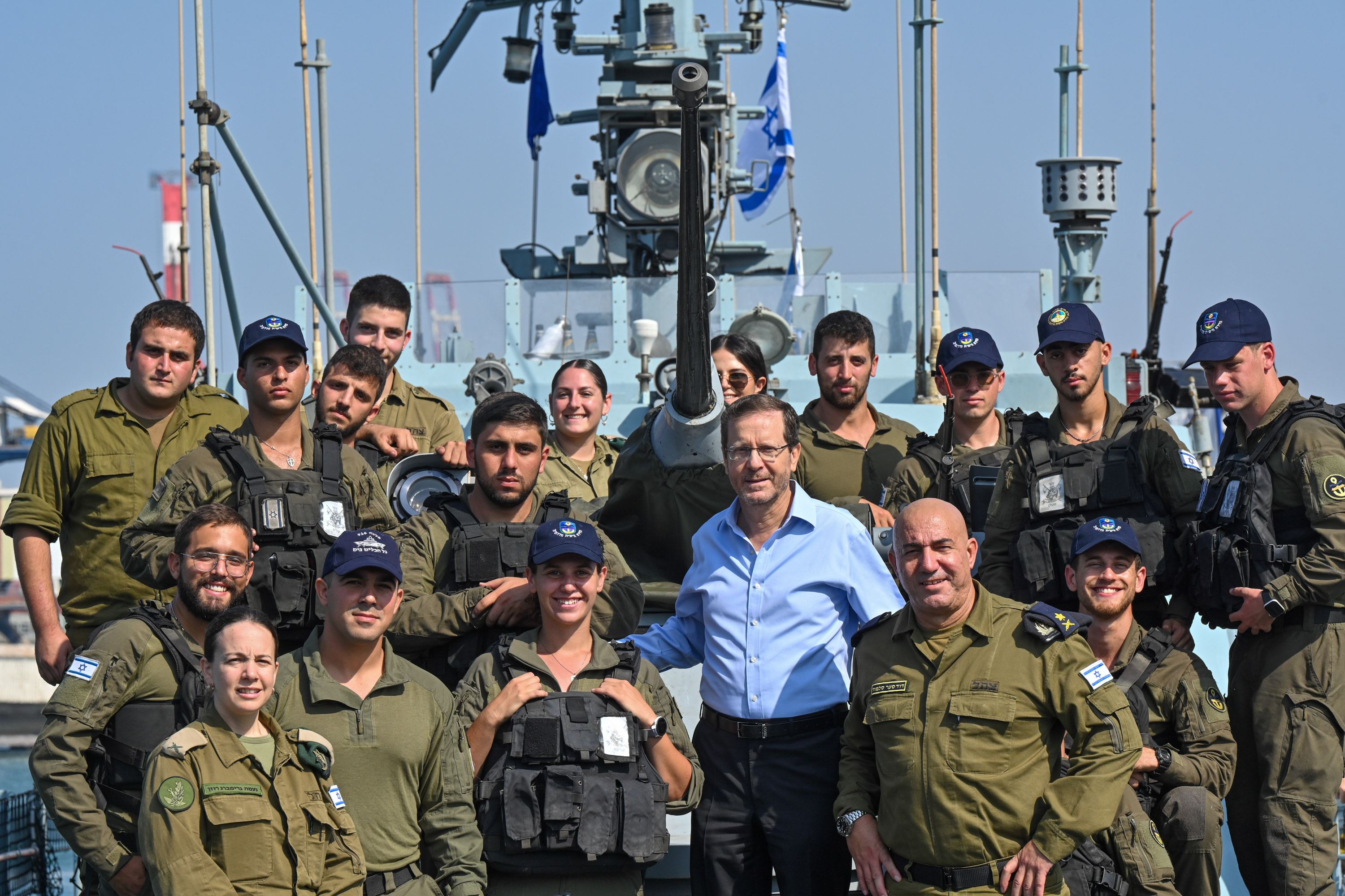 על רקע הלחימה המתמשכת, נשיא המדינה יצחק הרצוג ביקר היום בבסיס זרוע הים באשדוד.