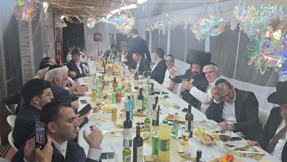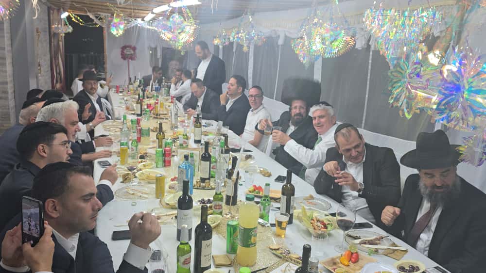יו"ר ש"ס ר' אבי אמסלם ערך כמנהגו סעודת חג בסוכתו רחבת הידיים, וראשי הסיעות החרדיות, 'אשדוד התורנית' ו'אגודת ישראל', הגיעו לברך