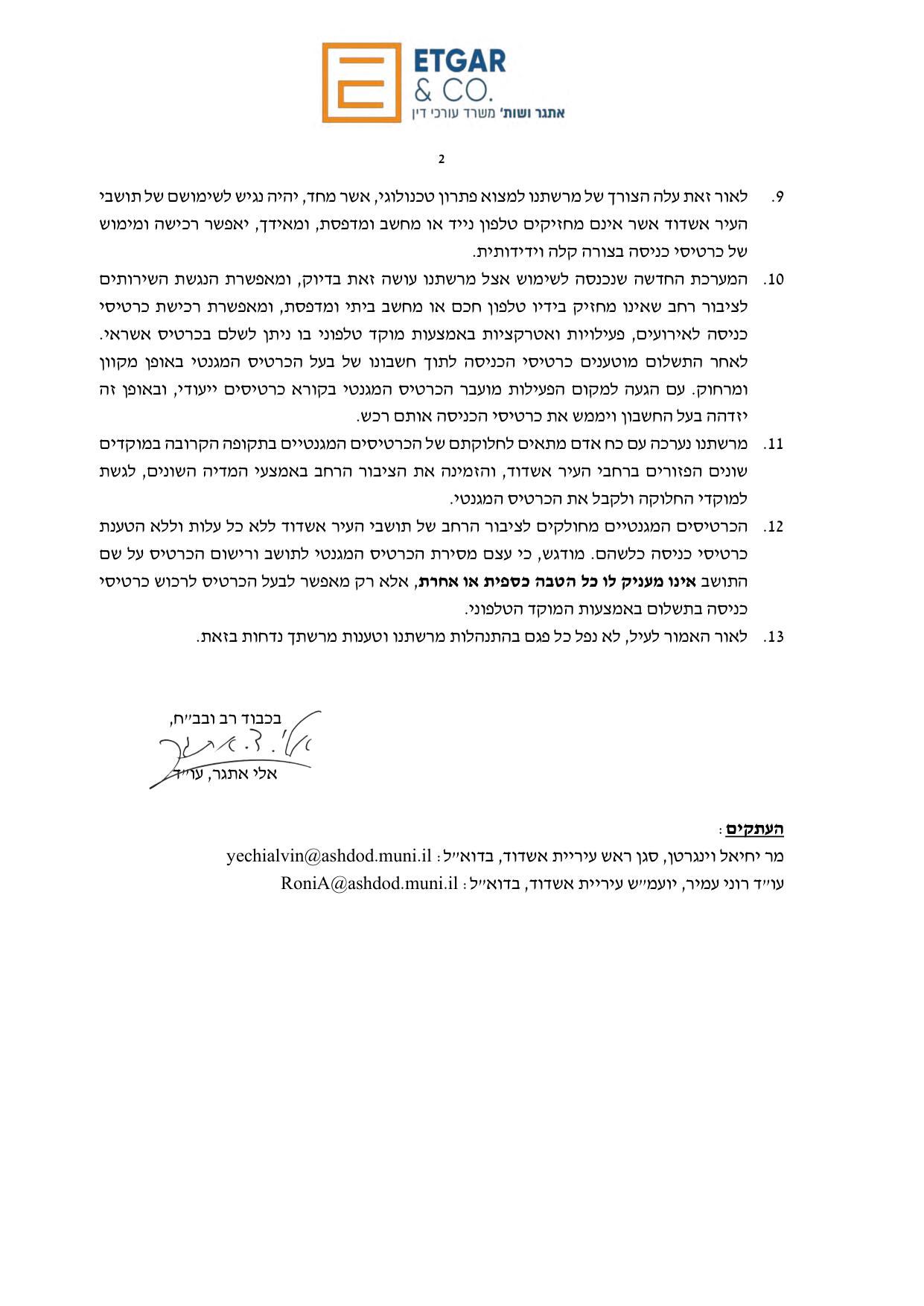העיריה מתייחסת גם לטענה לפיה הכרטיסים חלקו רק לקהלים מסויימים התומכים אגו"י ובתשובתה מבהירה העיריה כי הכרטיסים חולקו רק משום ש"ציבור לא מבוטל מתושבי העיר אינו מחזיק בידיו מכשירי טלפון חכם או מחשב ביתי" ולכן, "עלה הצורך למצוא פתרון טכנולוגי שמחד יהיה נגיש לשימושם של התושבים ומאידך יאפשר רכישה ומימוש של כרטיסי כניסה בצורה קלה".