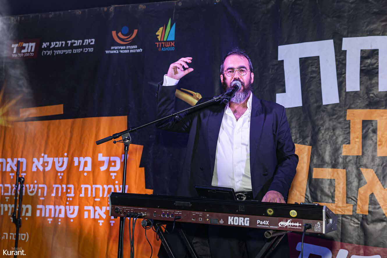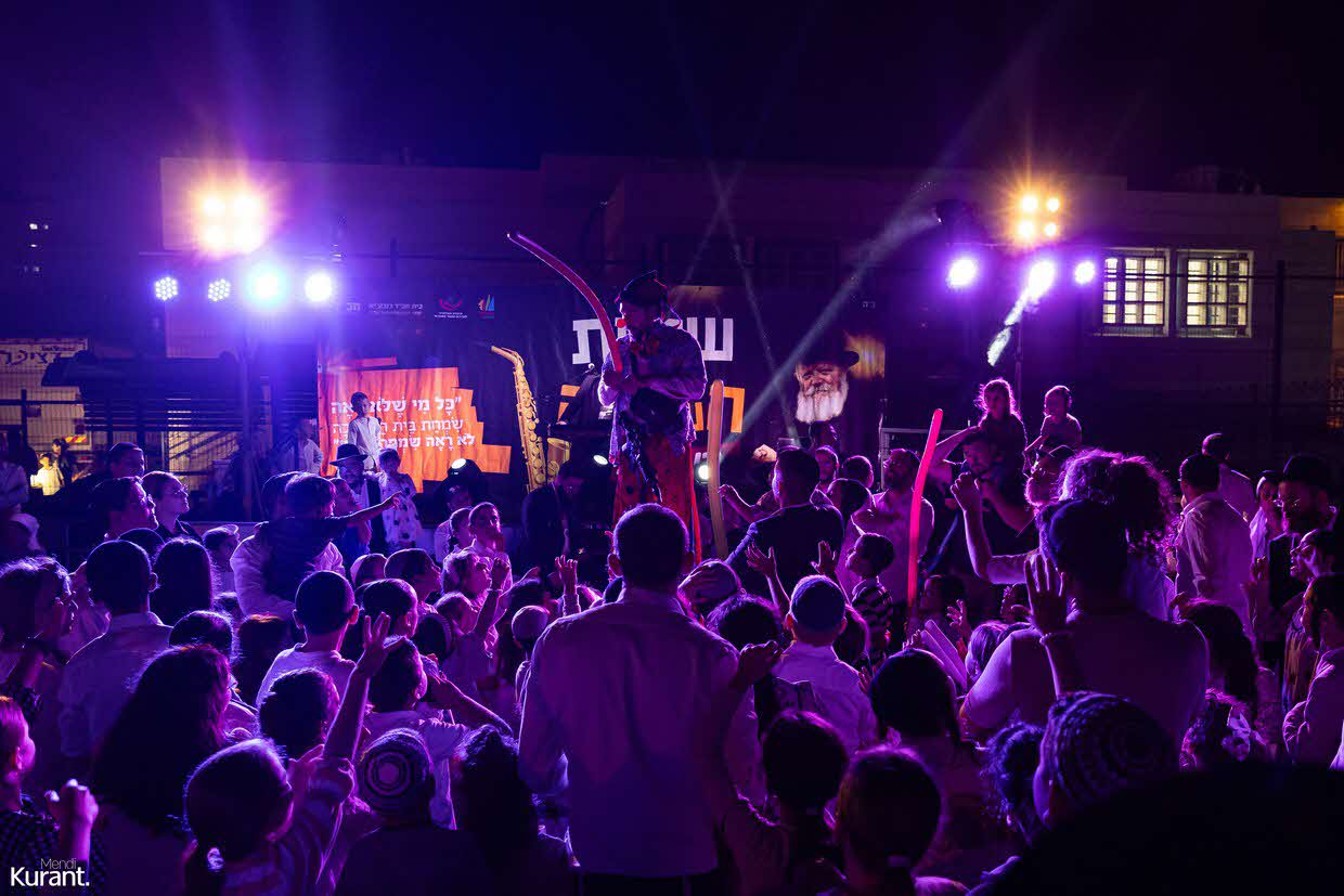 מסורת של שמחה ברחובה של עיר: מאות רבות מתושבי העיר השתתפו בשמחת בית השואבה ברובע י"א באשדוד תחת ניצוחו של רב השכונה ושליח חב"ד הרב מרדכי מנשה לאופר • התאום מצרפת יעקב גוריון לִהֲטֵט, הבובות החסידיות הרקידו, שליחי חב"ד הרב גודמן והרב לאופר בירכו, הזמר החסידי זבולון נתנוב הקפיץ – והמוני הורים וילדיהם שאבו מלוא חופניים שמחה והנאה ונשאו פסוקי תורה ותפילה לזכות עם ישראל