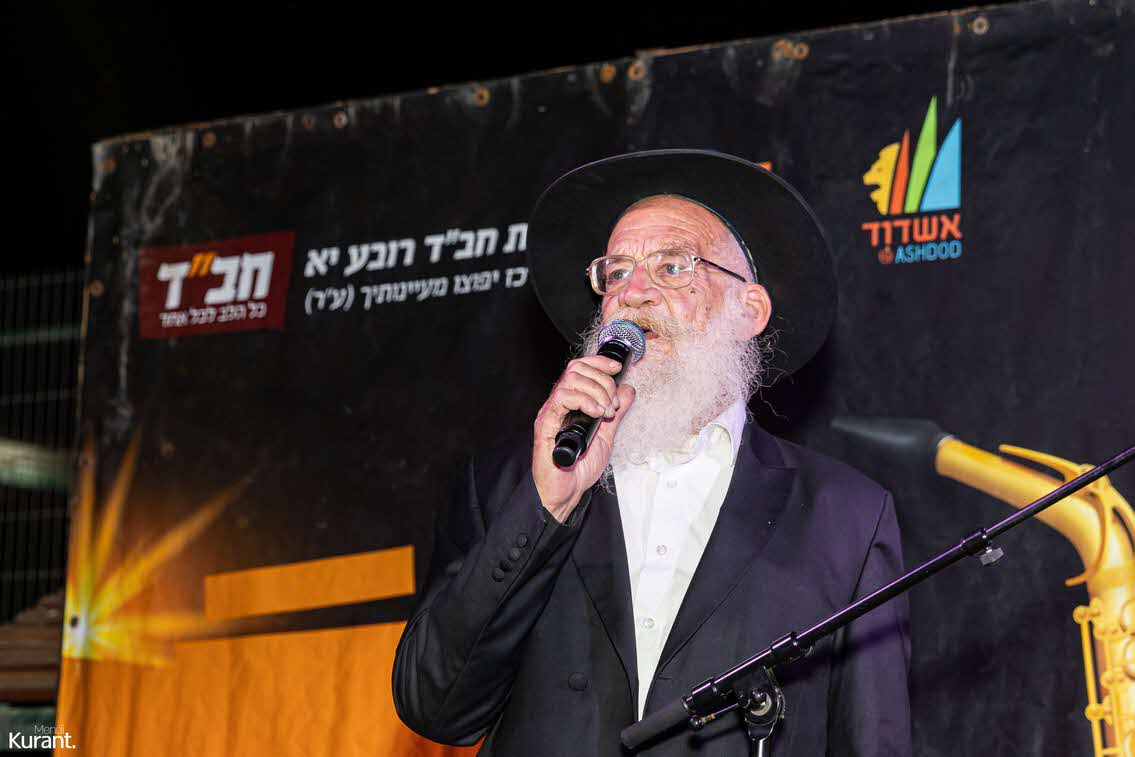 הרב מרדכי מנשה לאופר, שליח חב"ד ורב רובע י"א באשדוד, והשליח הראשי של חב"ד לעיר הרב שניאור זלמן גודמן, בירכו את המשתתפים והודו לכל השותפים בארגון האירוע.