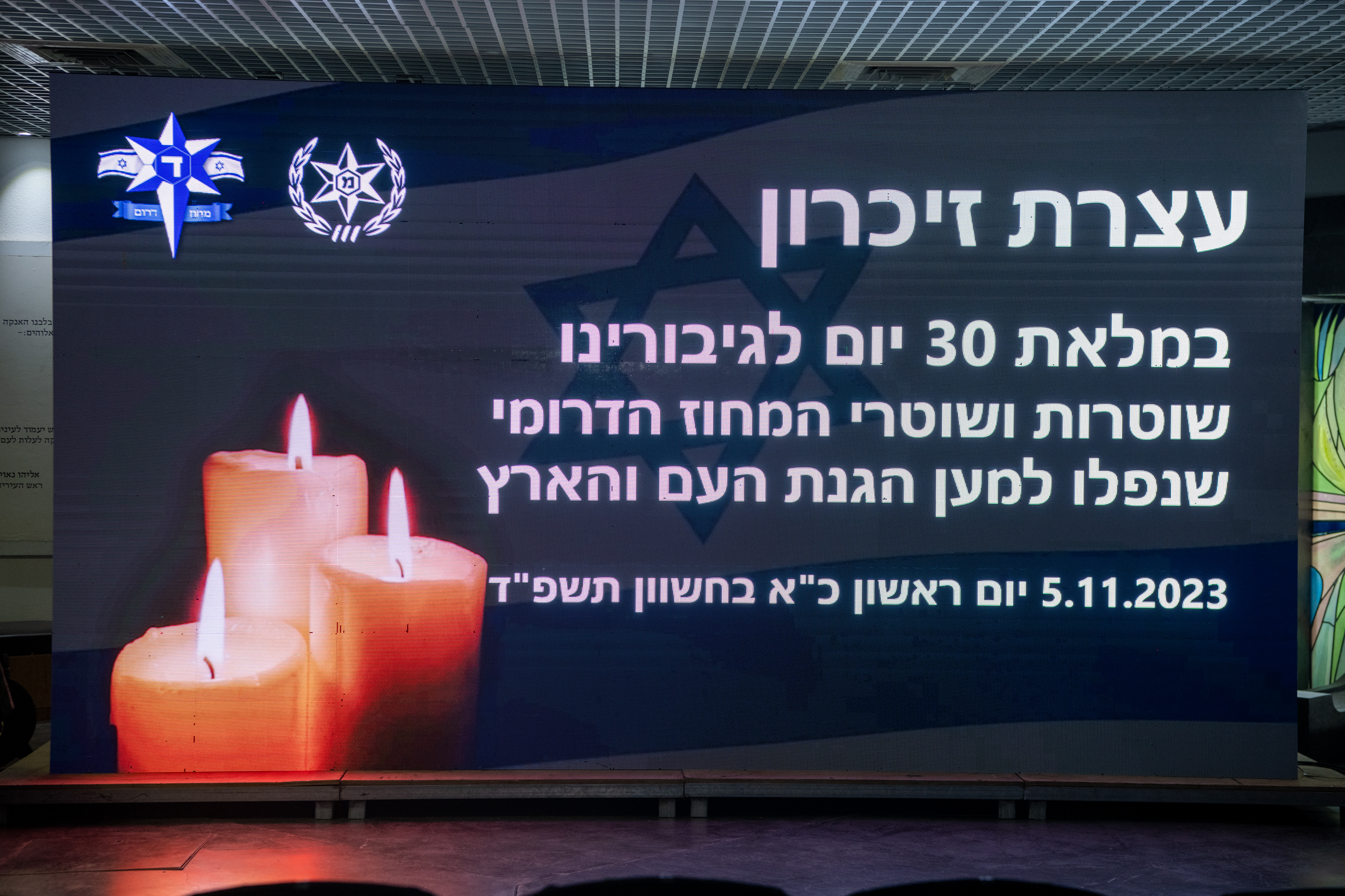 לציון 30 יום ללחימה התקיימה היום (א') ביד לבנים בבאר שבע, במעמד מפקד מחוז הדרום, ניצב אמיר כהן עצרת זיכרון ל-32 שוטרים ושוטרות של המחוז הדרומי שנפלו בקרב להגנת אזרחי ישראל תוך שחיסלו מאות מחבלים ובזכותם הצליחו לבלום את מסע ההרג הרצחני של חמאס.