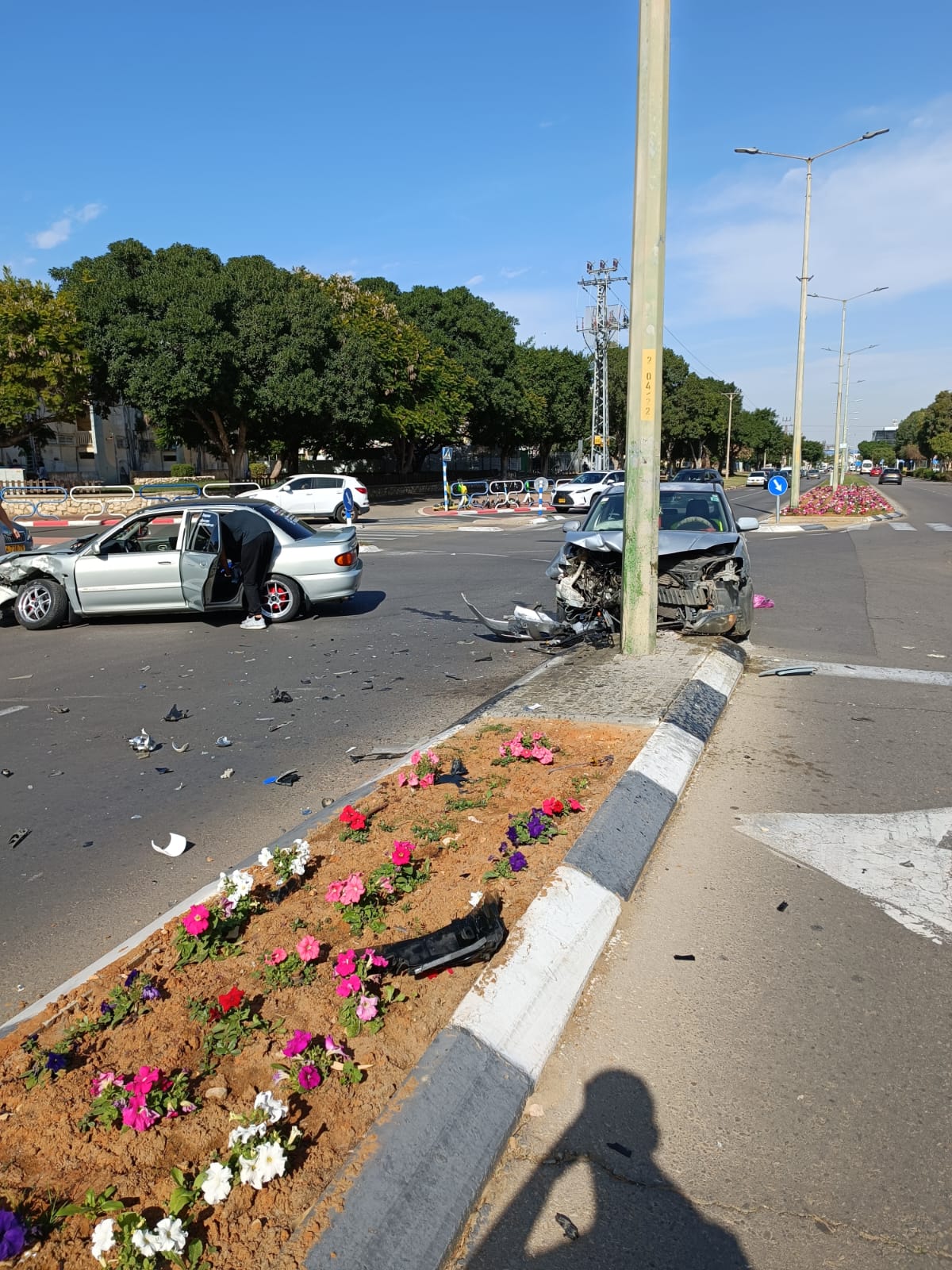 תאונת דרכים התרחשה לפני זמן קצר בצומת שד' ויצמן פינת רחוב הרמב"ם * צוותי ההצלה שהוזעקו למקום העניקו סיוע ראשוני לפצוע אחד במצב קל