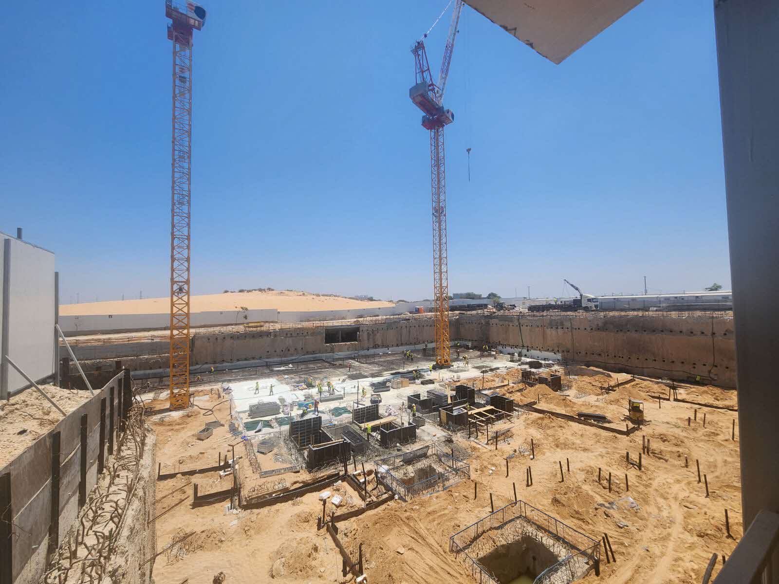 מתקדמות העבודות להקמת המגדל החדש ב'אסותא'. השבוע הוצבו בשטח שני מנופי ענק