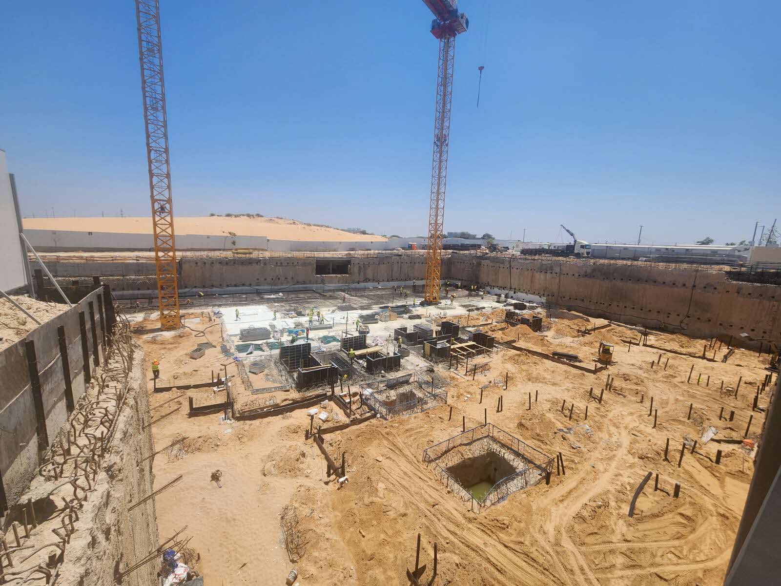 השלב הזה מתרחש לאחר עבודות החפירה שנמשכו יותר משנה, במהלכן פינו אלפי משאיות כמויות אדירות של חול ונחפרה החפירה הענקית שבה הוצבו היסודות למגדל.