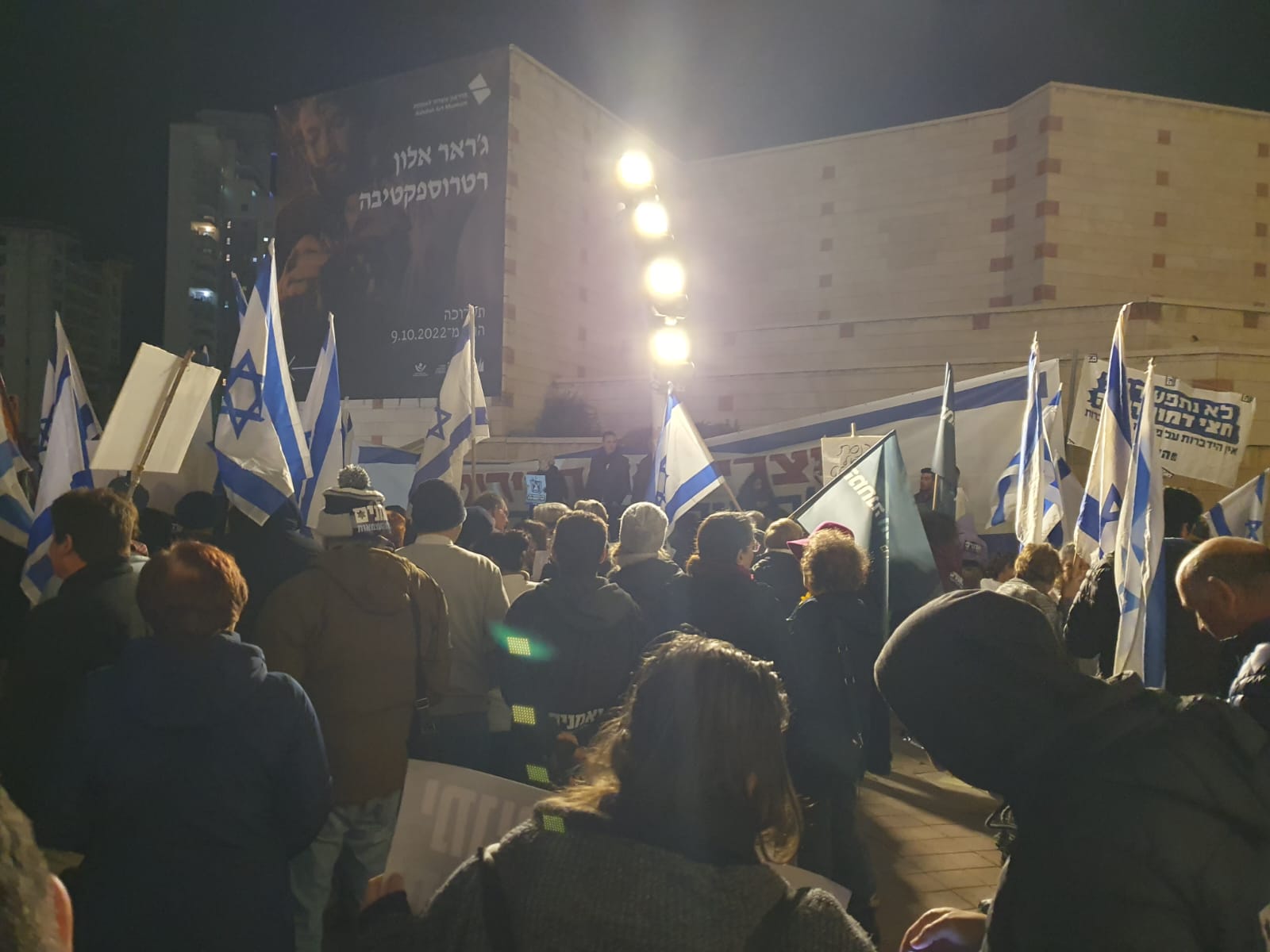 מאות תושבים המזוהים עם השמאל הישראלי יצאו אמש להפגין מול עירית אשדוד נגד הרפורמה המשפטית שמקדמת הממשלה